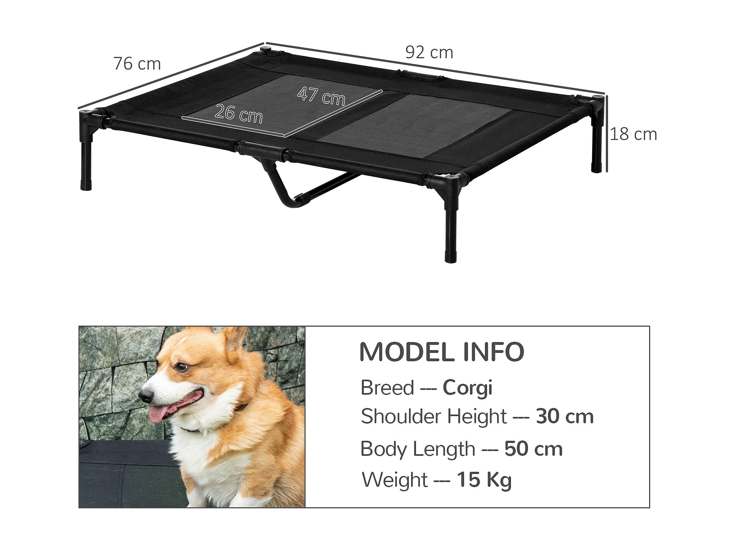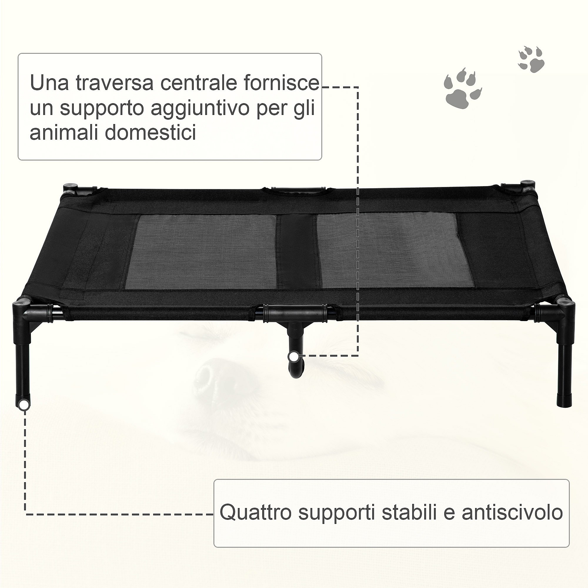 Brandina per cani grandi in metallo e tessuto con borsa di trasporto nero