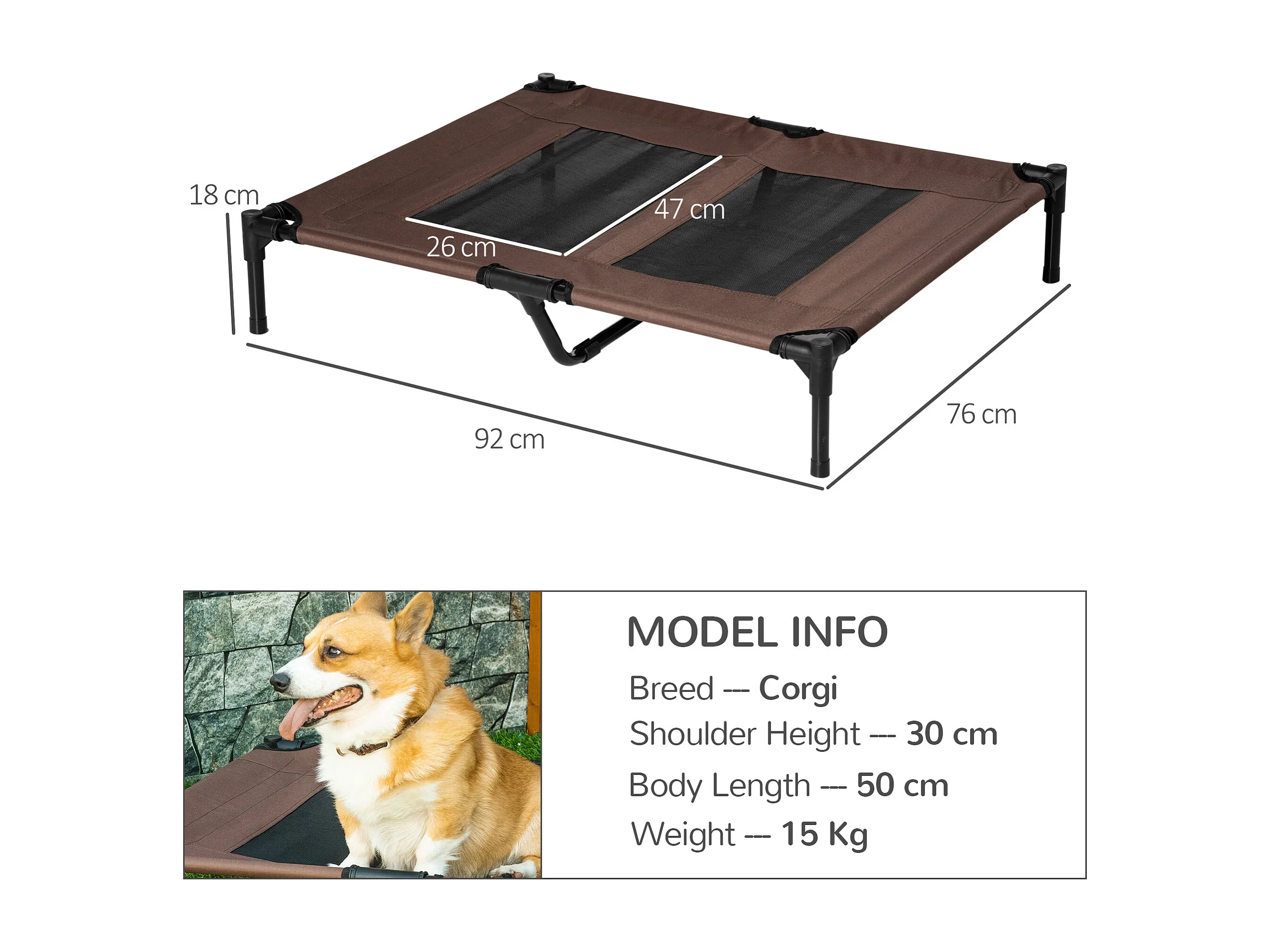 Lettino per cani rialzato e portatile con seduta traspirante nero e caffè
