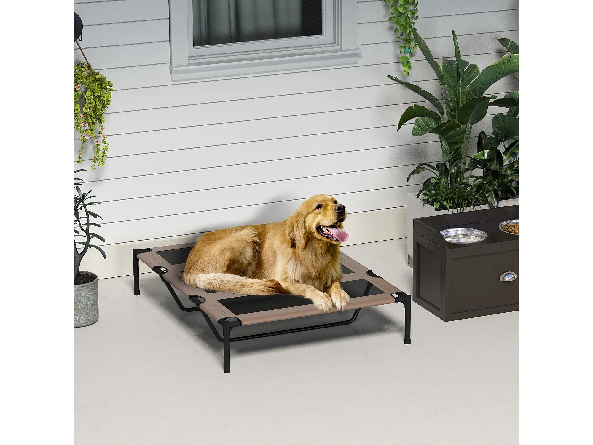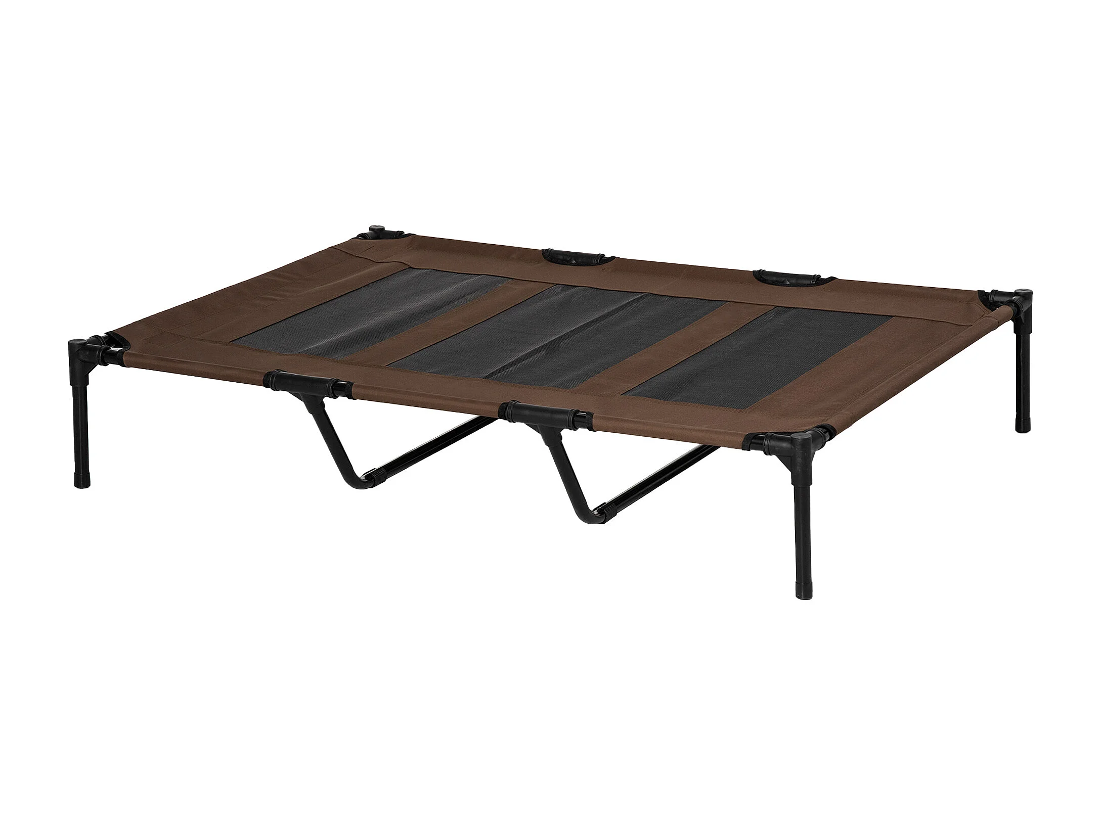 Lettino per cani rialzato e portatile con seduta traspirante nero e caffè