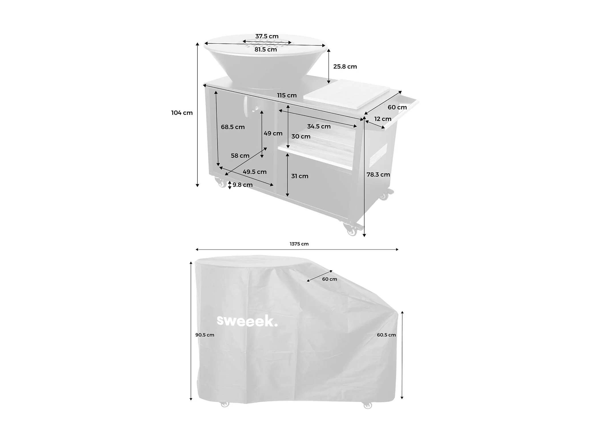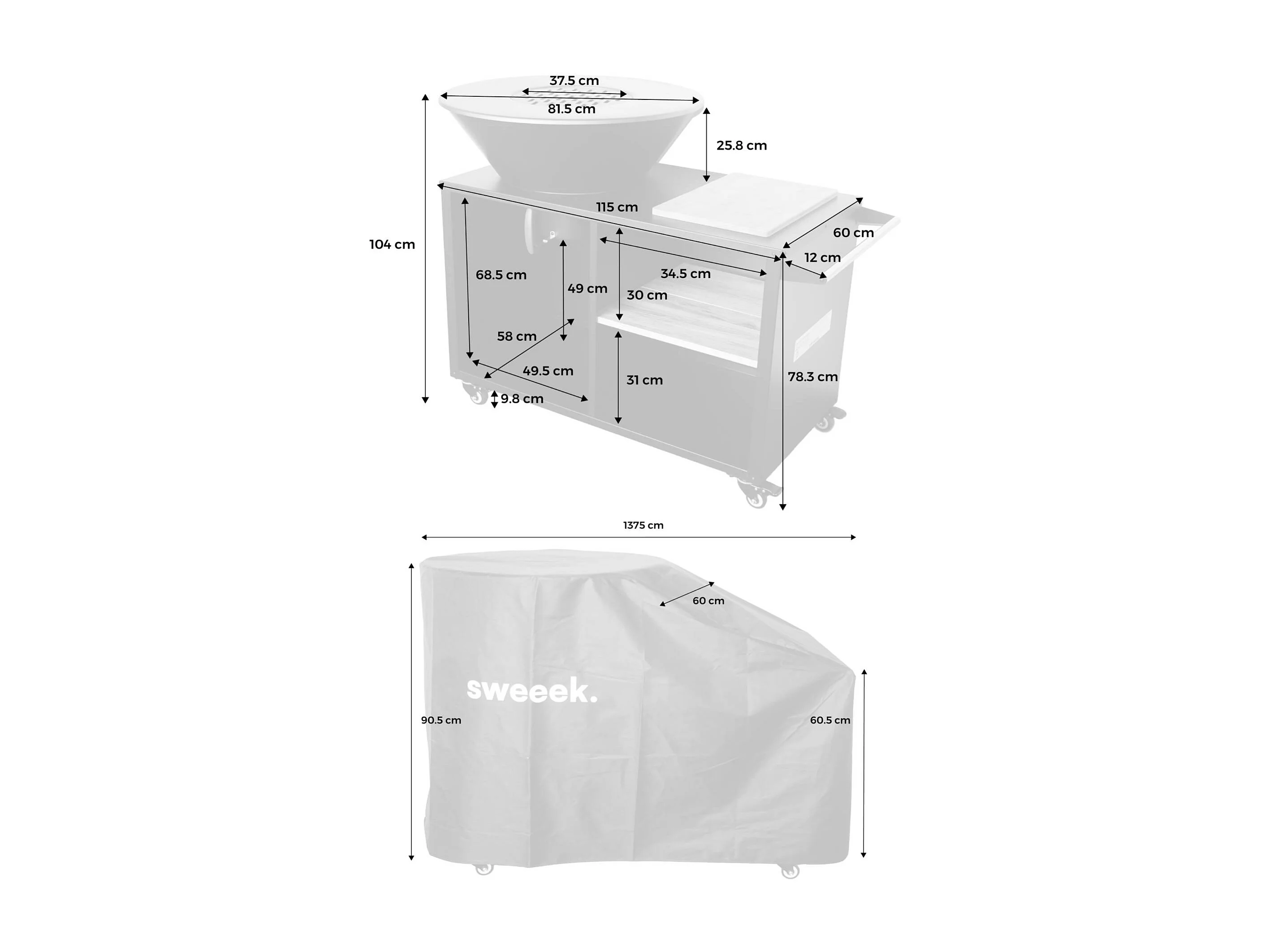 Bruciatore barbecue con piano di lavoro e copertura di protezione,
