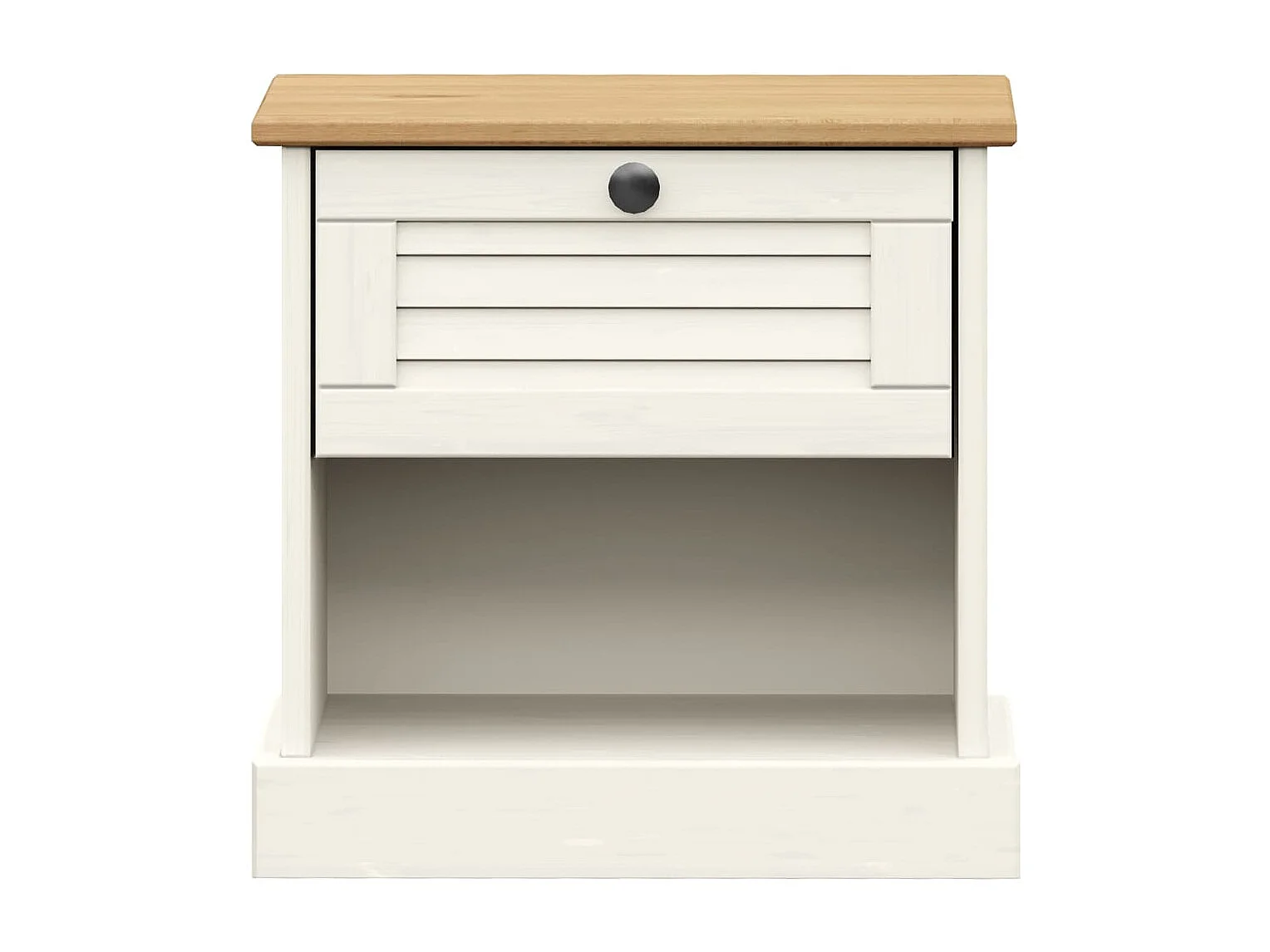Mjolda Comodino con Gambe in Metallo Bianco Legno Massello Pino OSLO
