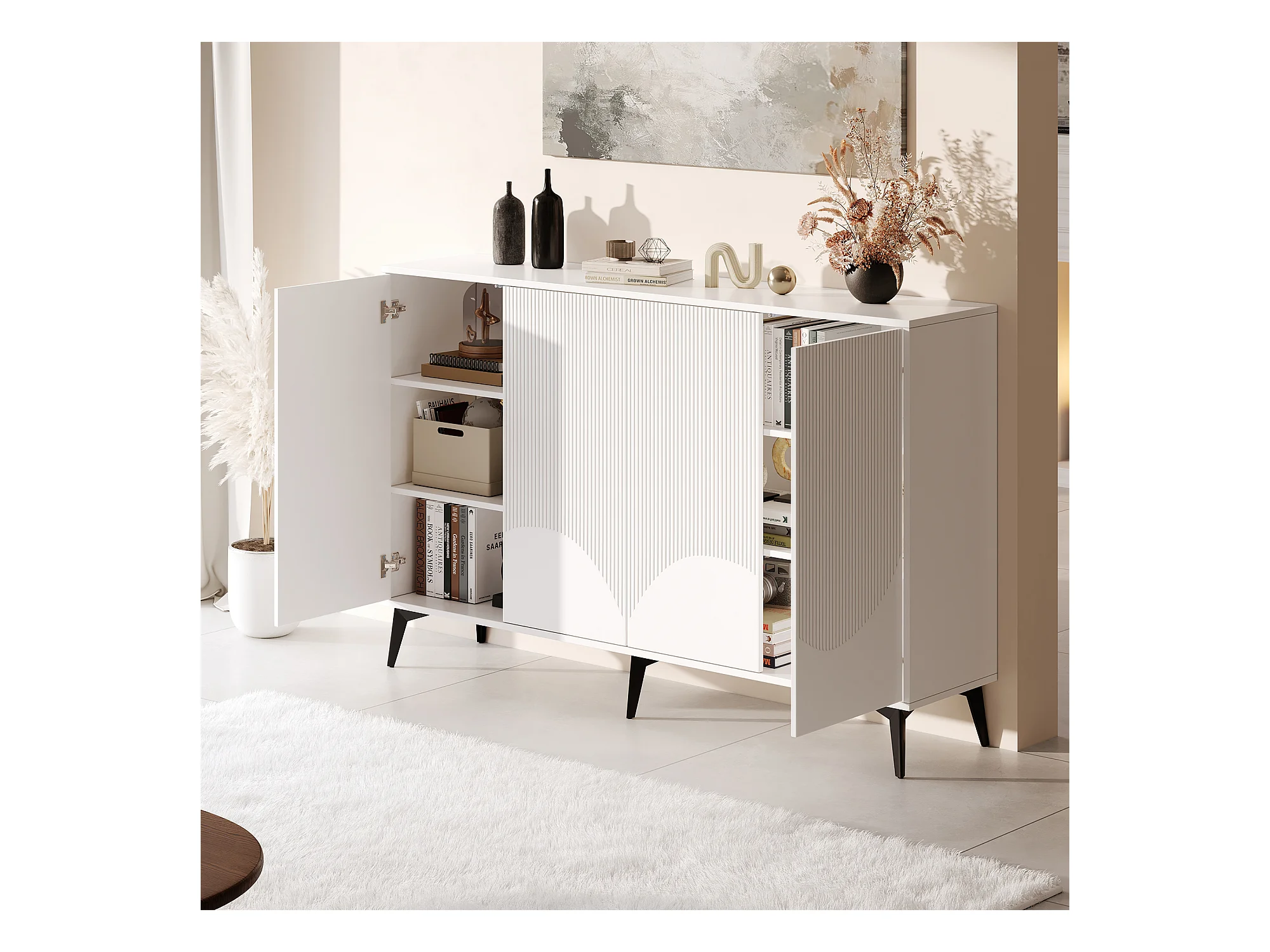 Buffet bianco in pannelli MDF con 3 cassetti e 2 cartelli, assortimento cucina salone 120 cm