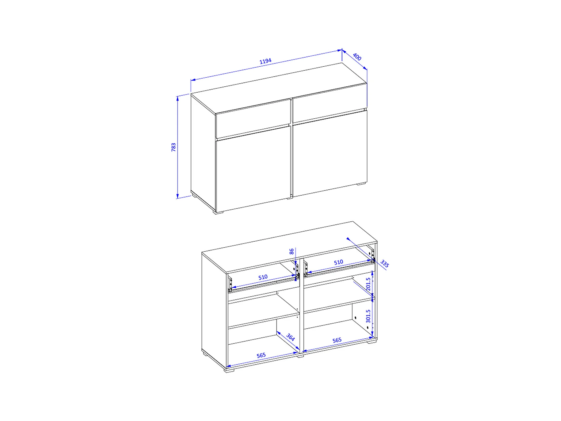Buffet 2 ante 2 cassetti Lilia bianco 78cm