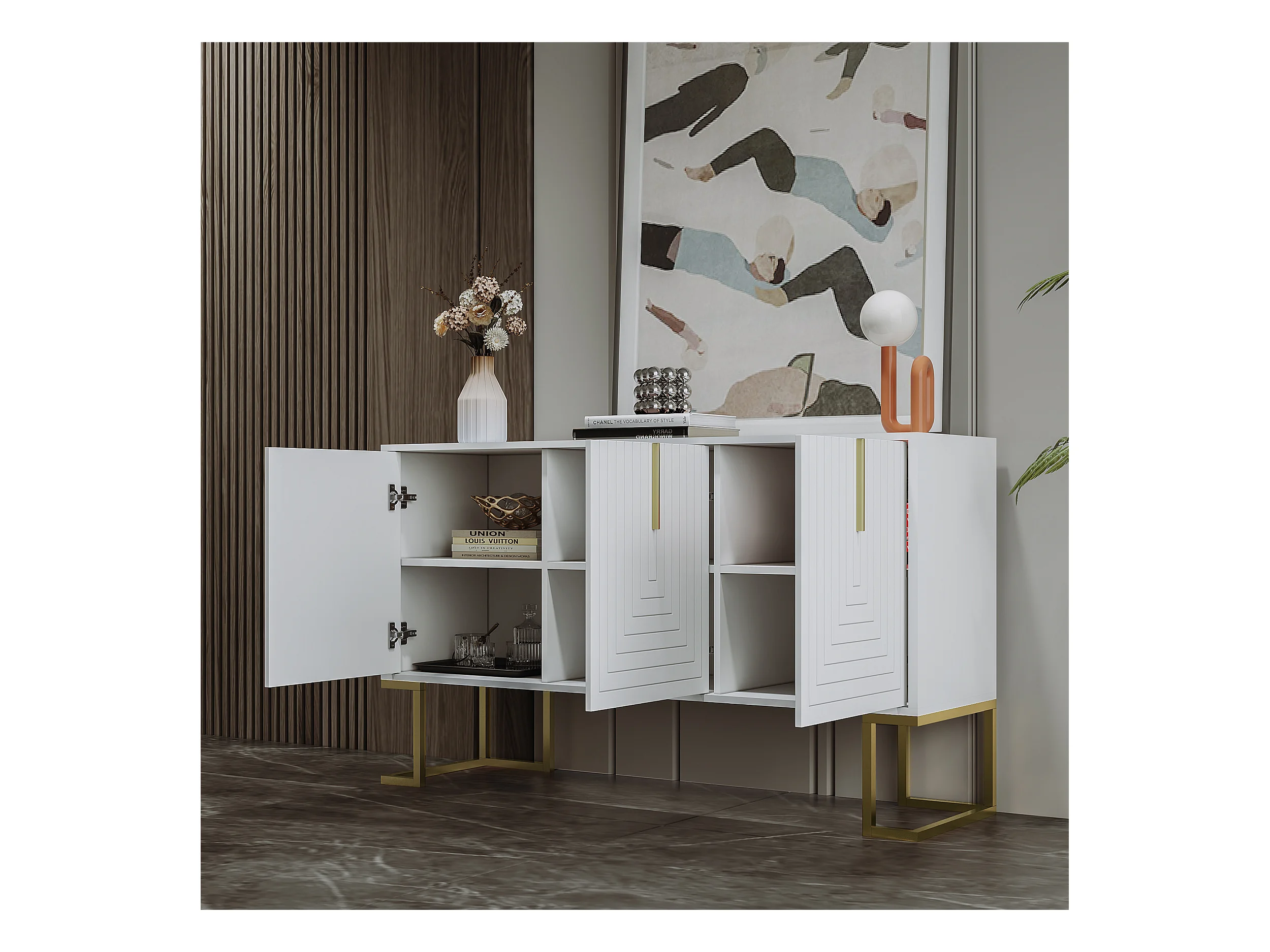 Buffet 3 porte MDF design moderno con ripiani regolabili e piedi in metallo bianco