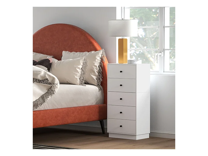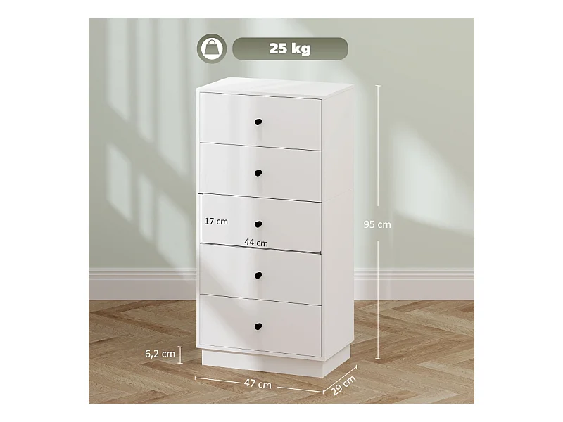 Buffet 5 cassetti MDF rangement salon chambre blanc 47 cm