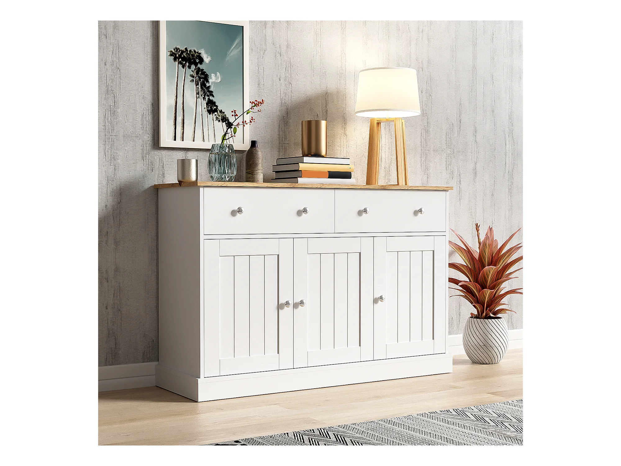 Buffet bois MDF 120 cm 3 porte 2 tiroirs salon séjour blanc et bois
