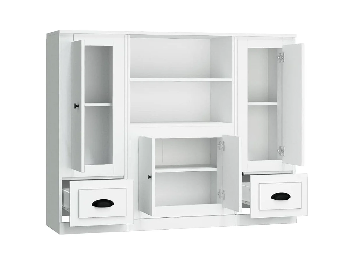 Credenza Credenza Comò Armadietto Contenitore Organizzatore Cucina Soggiorno Soggiorni 3 pz MDF Bianco Lucido 02_0037032