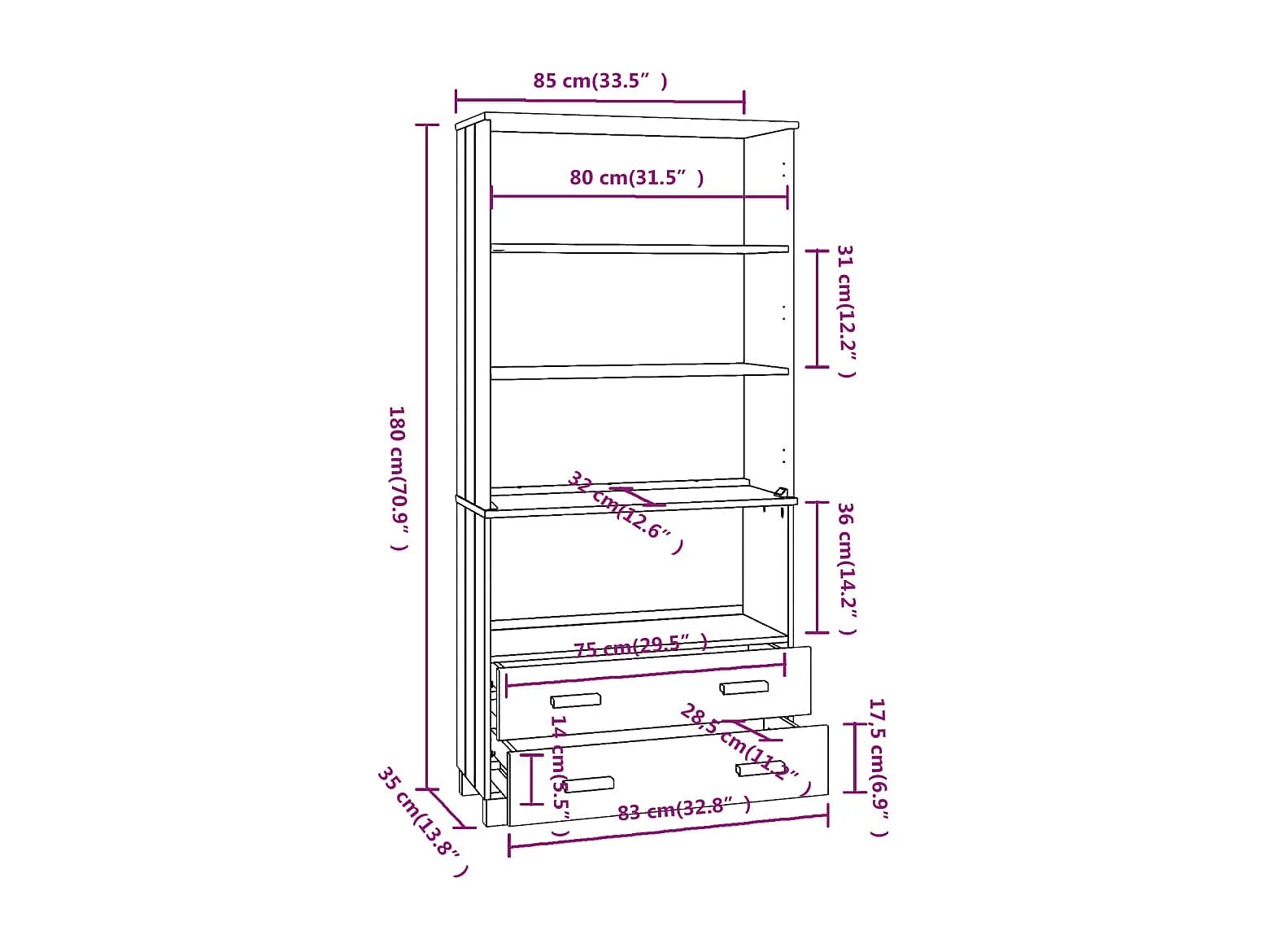 Credenza buffet cassettiera mobile contenitore organizer cucina soggiorno soggiorno 85 x 35 x 80 cm legno di pino massiccio marrone 02_0032179