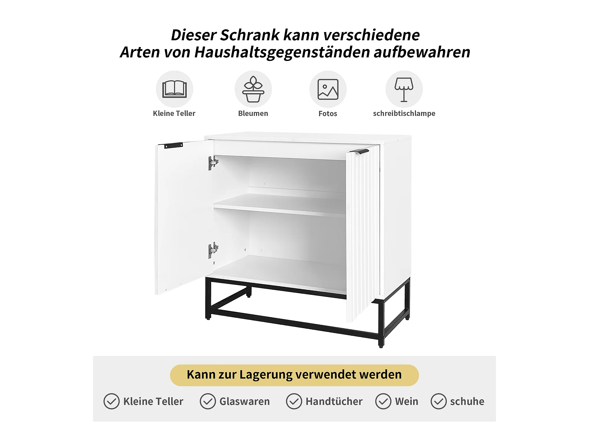 Buffet da tavolo in pannello E1 15mm con porte ondulate, per salone o camera, beige chiaro