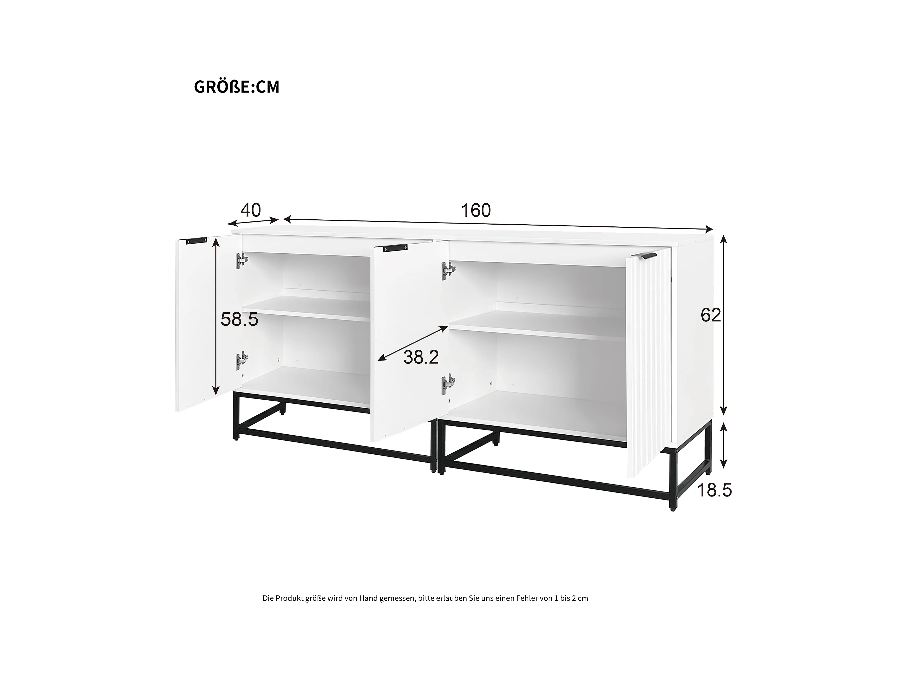 Credenza 140x40x80cm - mobile con 4 ante, gambe in metallo, lucido, disegno geometrico bianco
