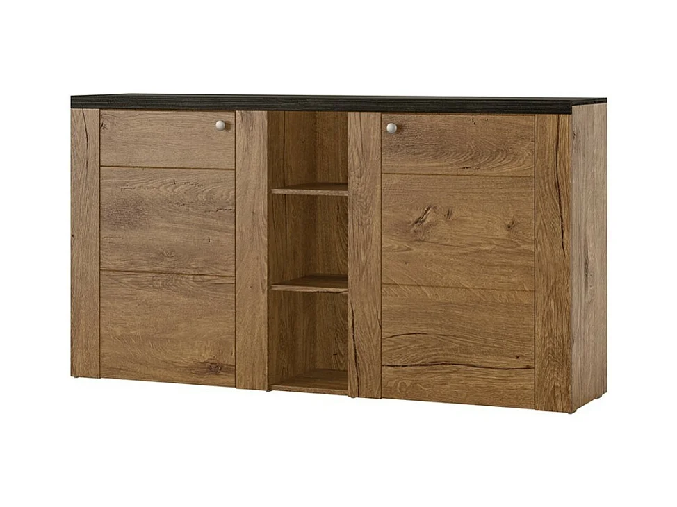 Buffet design 155cm per soggiorno colore rovere e nero effetto legno collezione SANTIAGO.