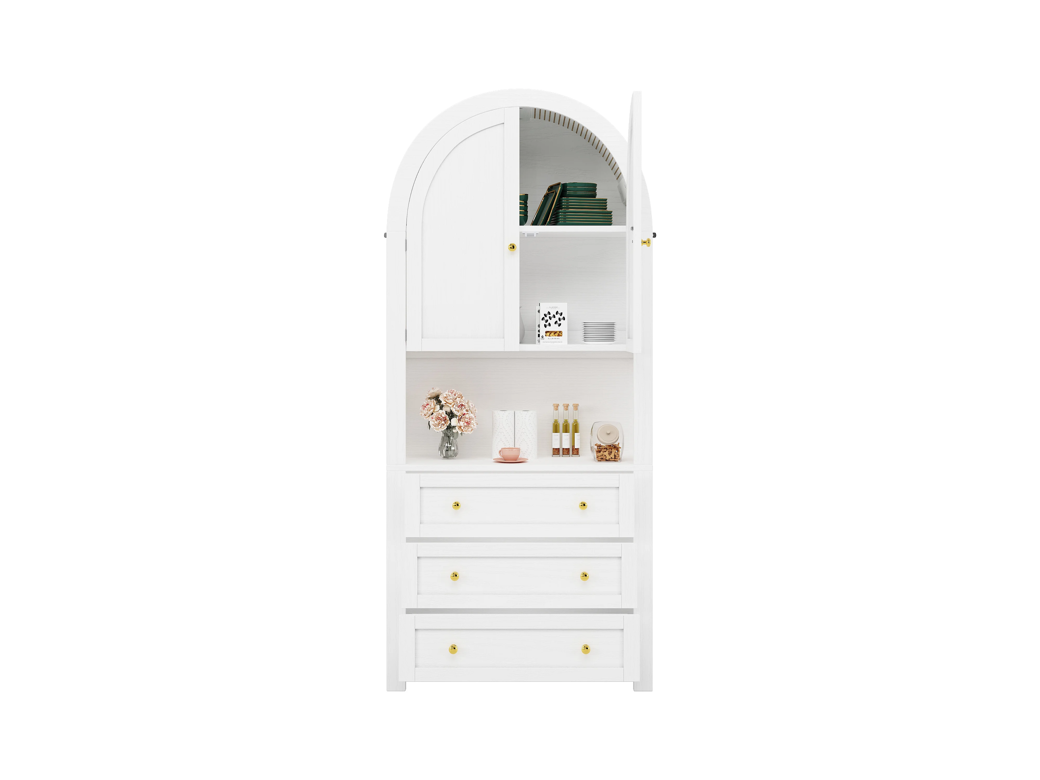 Buffet Haut Arqué 70x35x180cm MDF Avec Tiroirs et Étagères Salon Cuisine Blanc