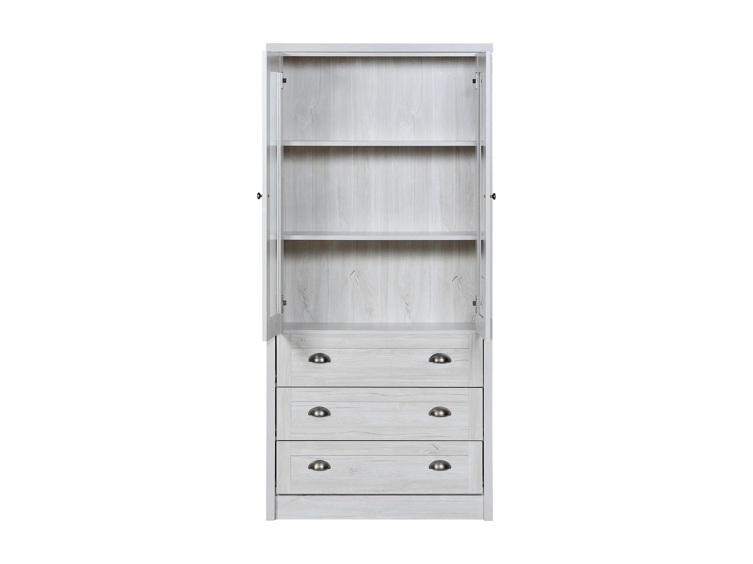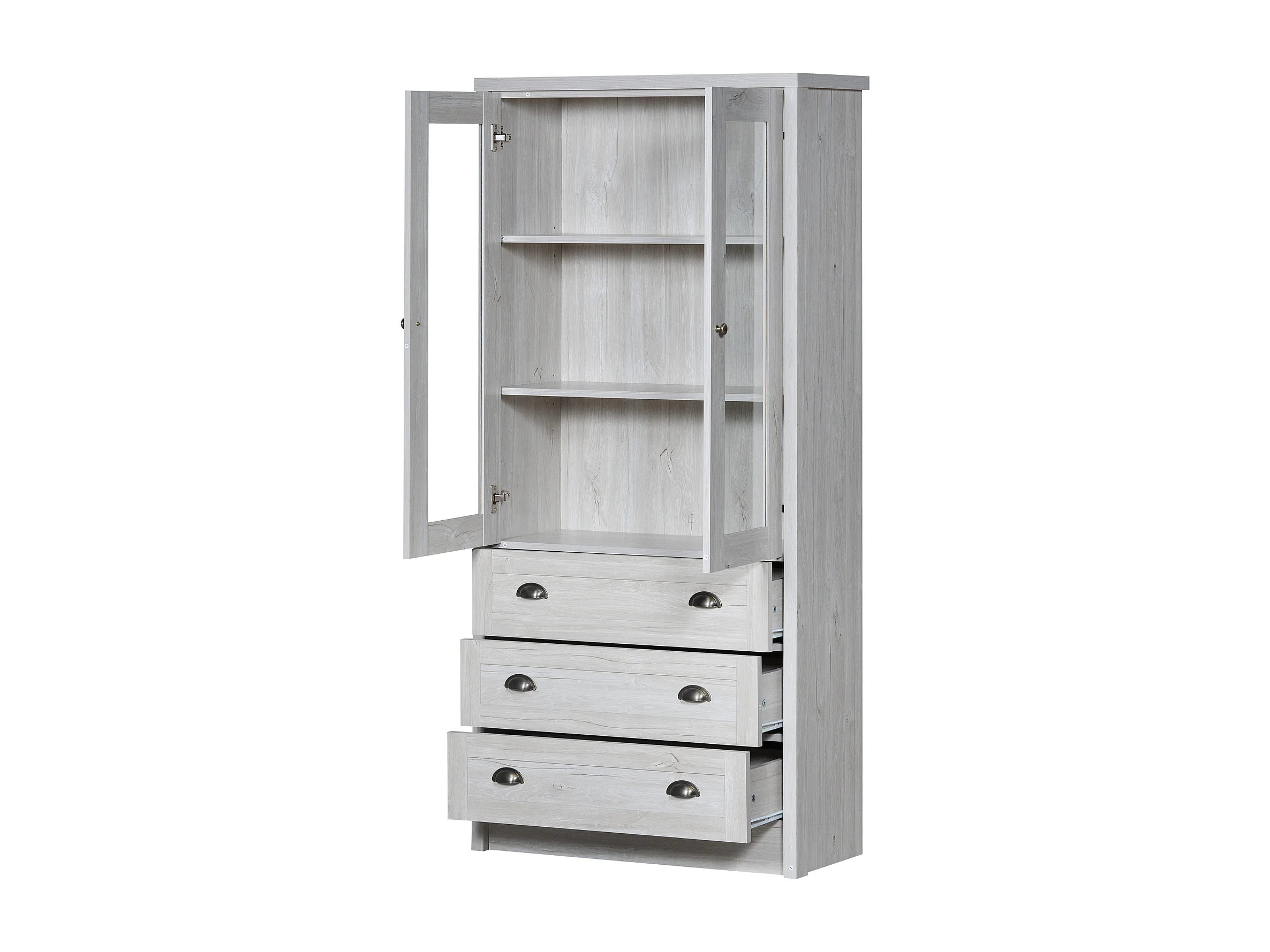 Buffet haut bois MDF rangement avec portes vitrées 3 tiroirs salon Bureau 80x34x171 cm