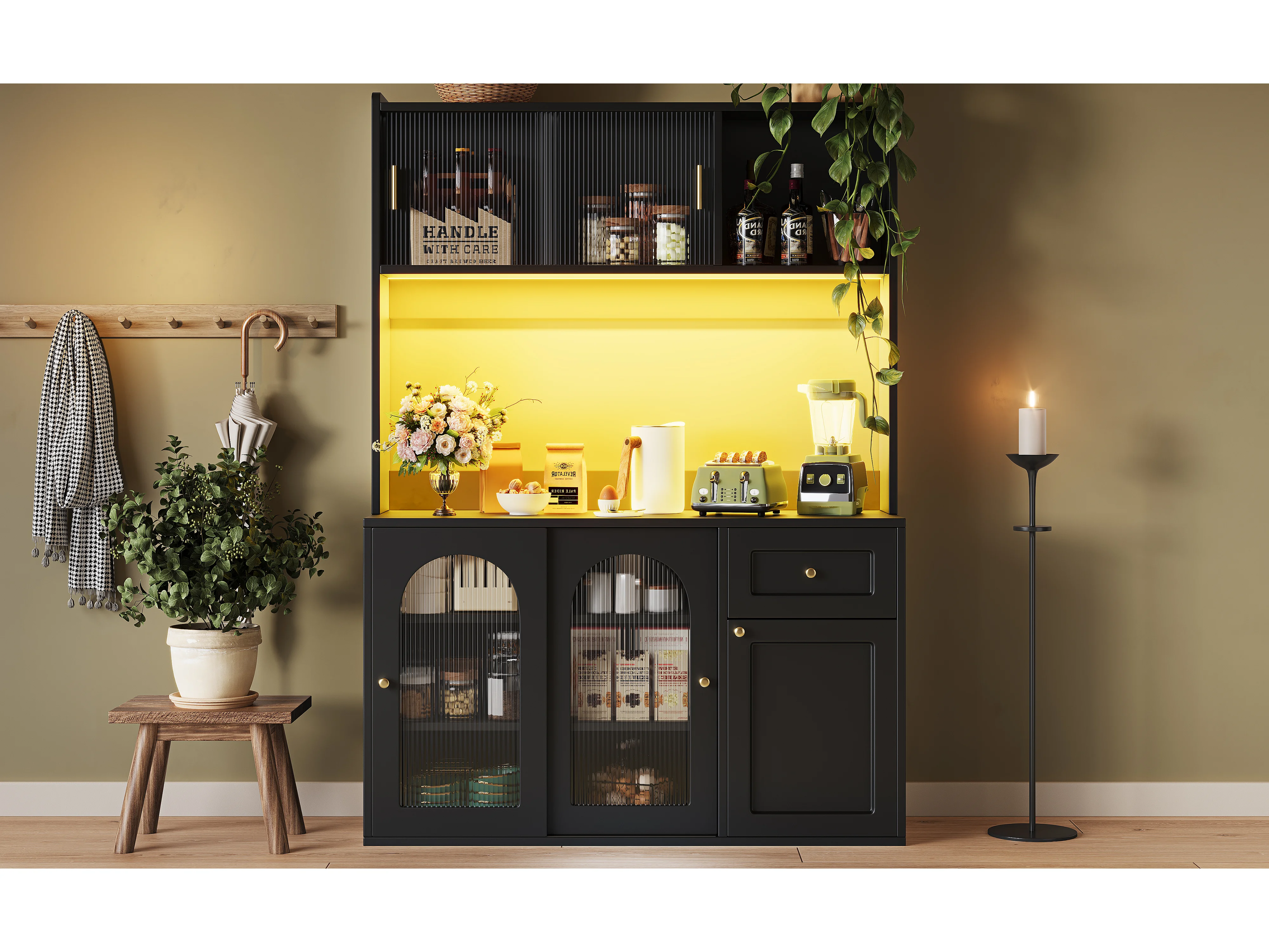 Buffet in MDF alto 180 cm LED étagères réglables pour kitchen salon chambre noir