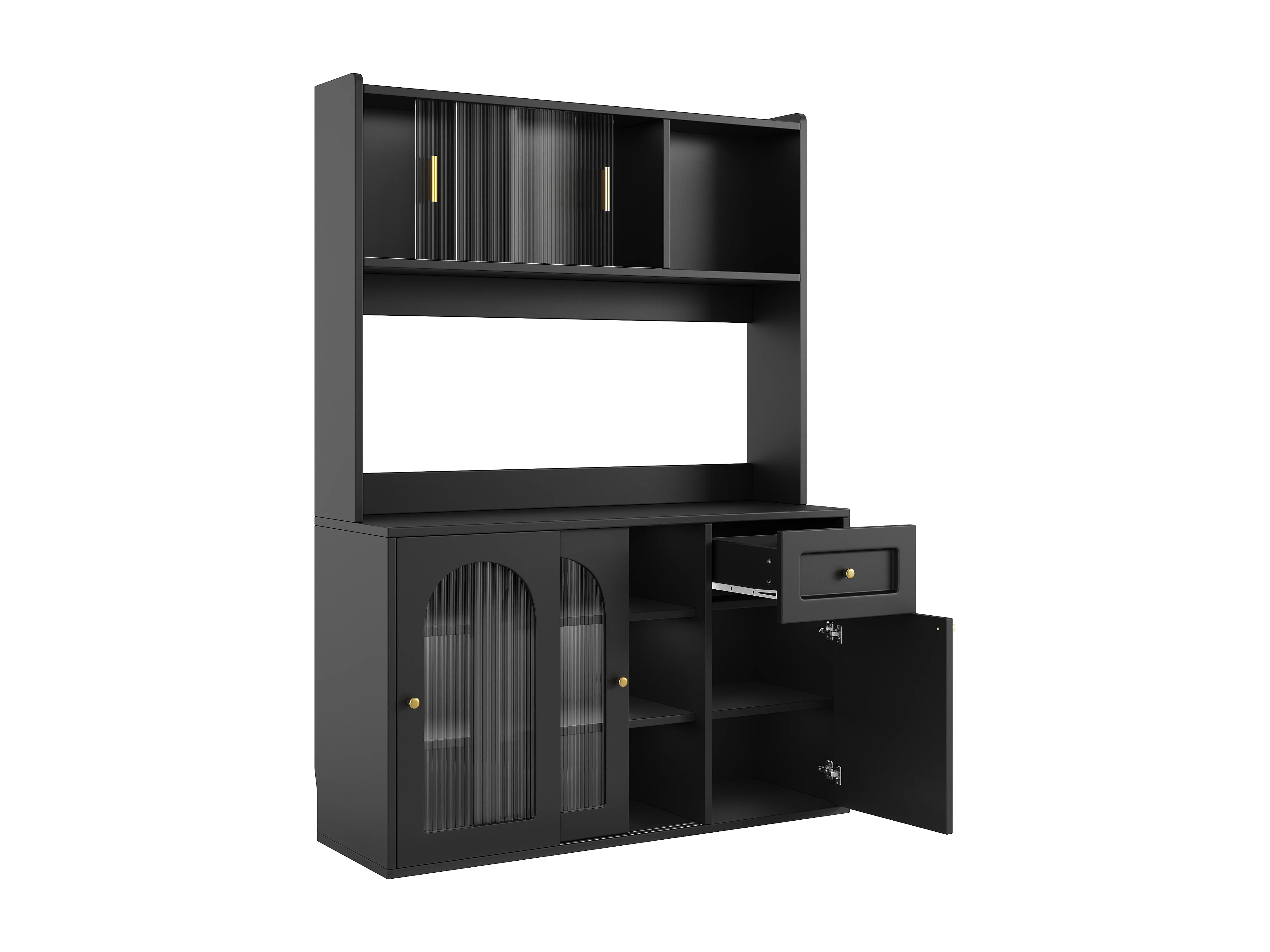 Buffet noir moderno MDF 120 cm con 4 porte scolpite rangement salon salle à manger