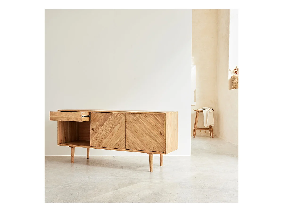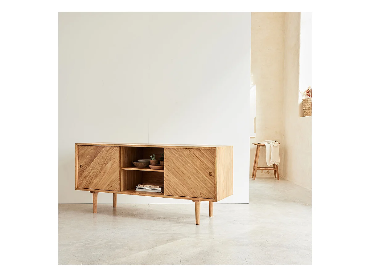 Credenza in legno con tre ante e ripiani 160 x 35 x 76 cm - Mobile porta TV di design salvaspazio, robusto e affidabile