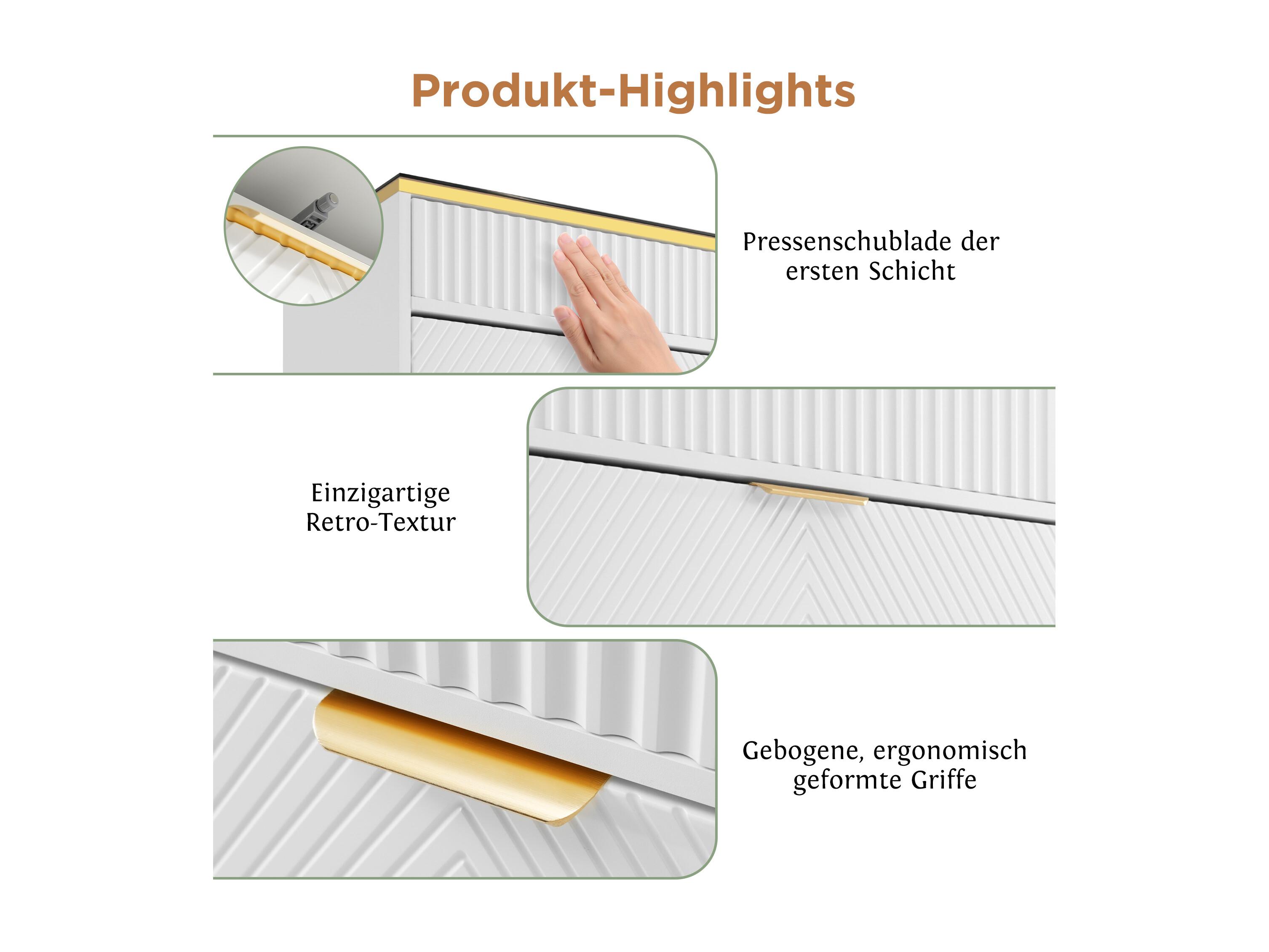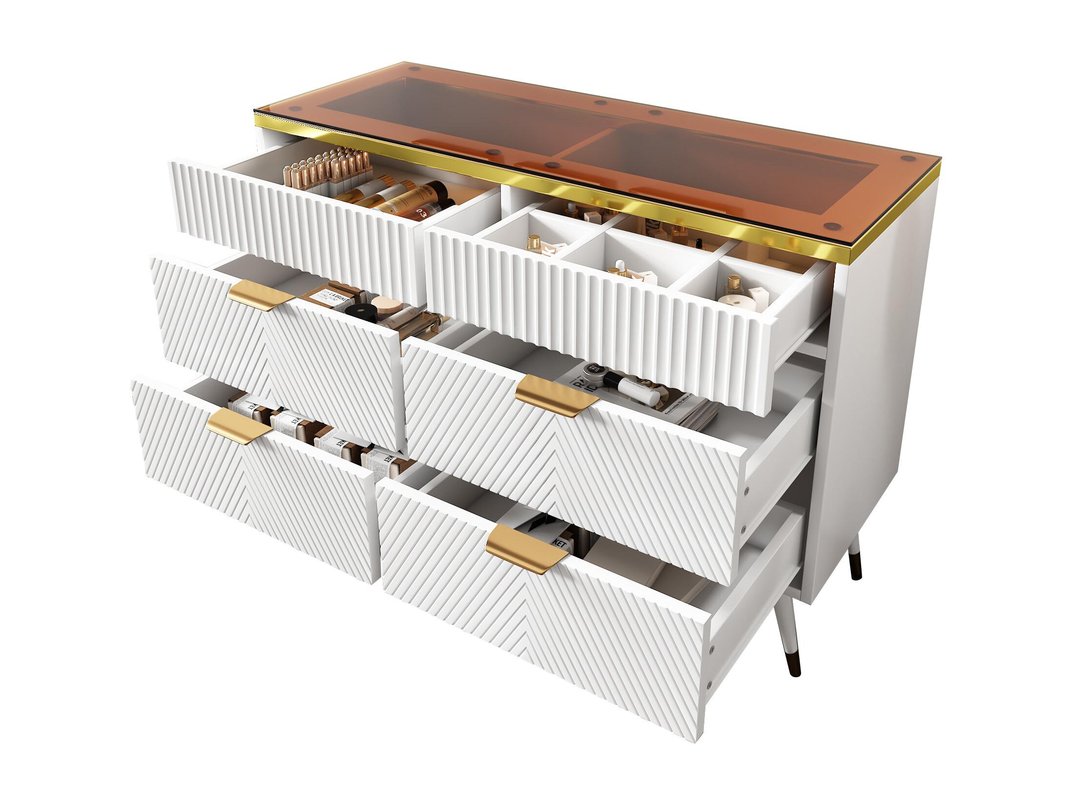 Buffet in vetro ambra 6 cassetti MDF metallo rangement salon chambre 120x40x76 cm bianco