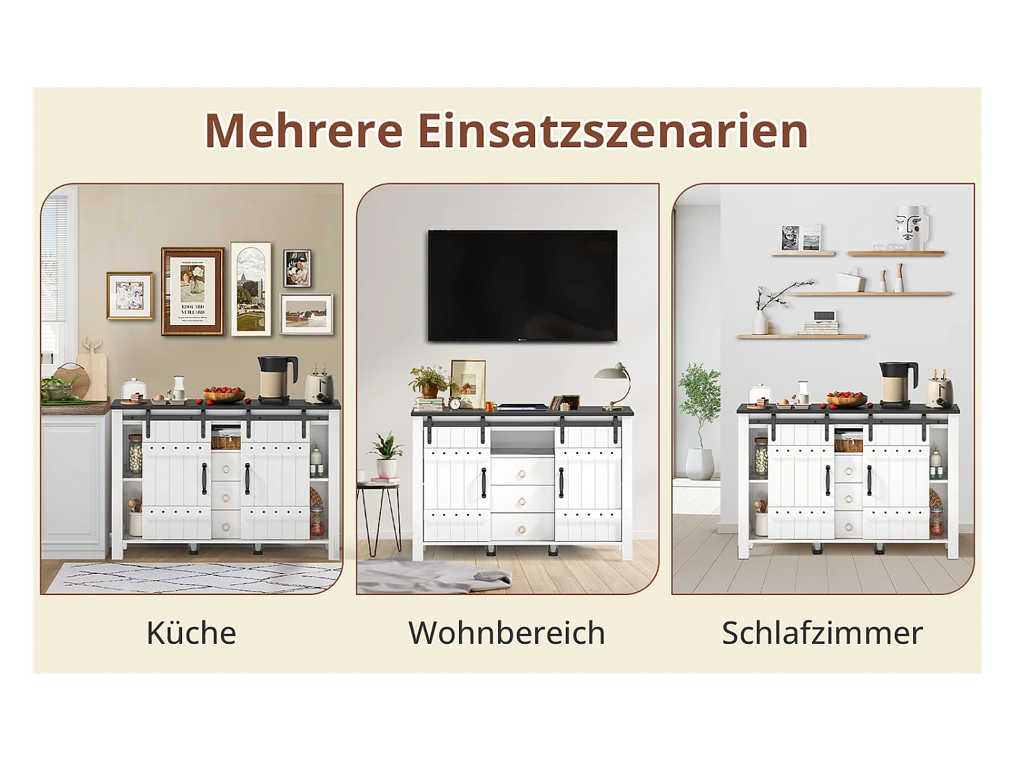 Buffet MDF 120 cm portes coulissantes 3 cassetti stile rustico per cucina salon blanc