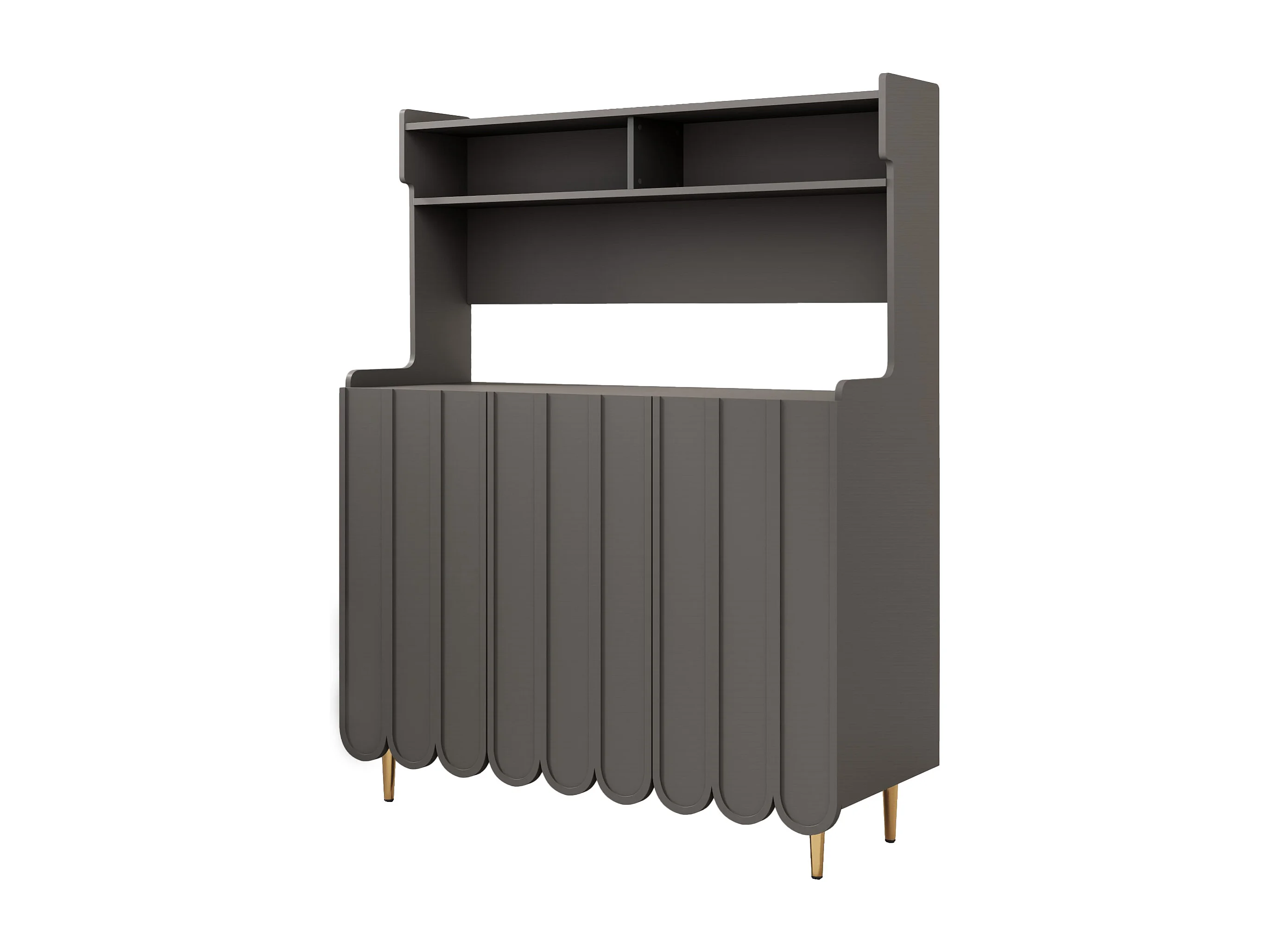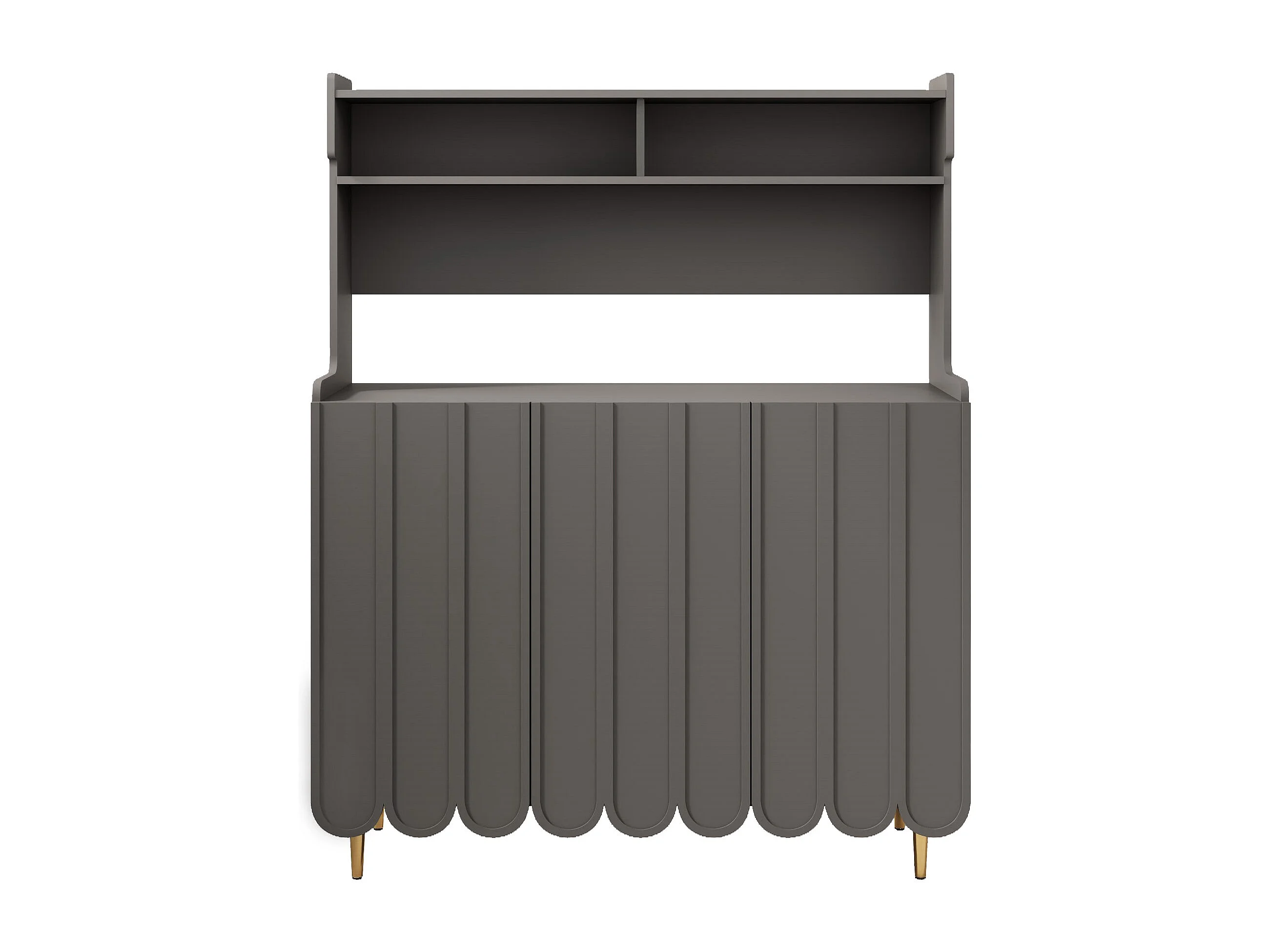 Buffet MDF 120x40x151cm grigio con ripiani aperti e piedi dorati per cucina e sala da pranzo