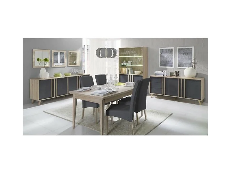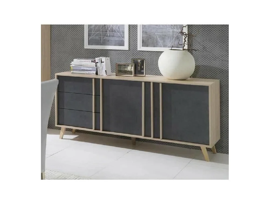 Buffet grande modello collezione OHIO. Color antracite e quercia. Stile design.