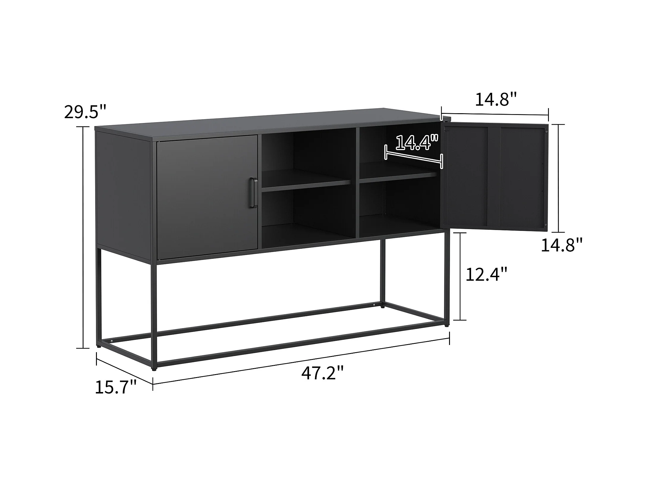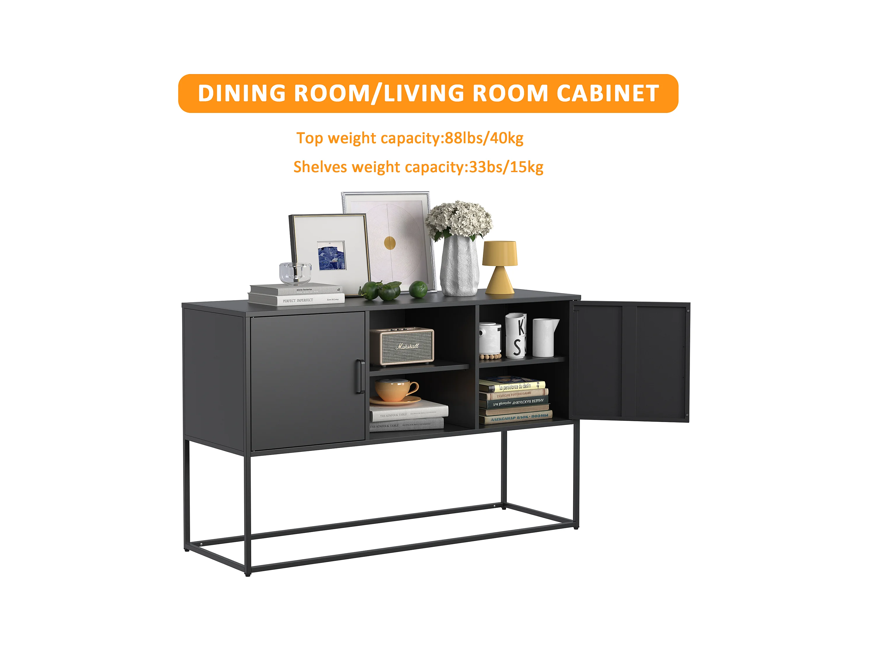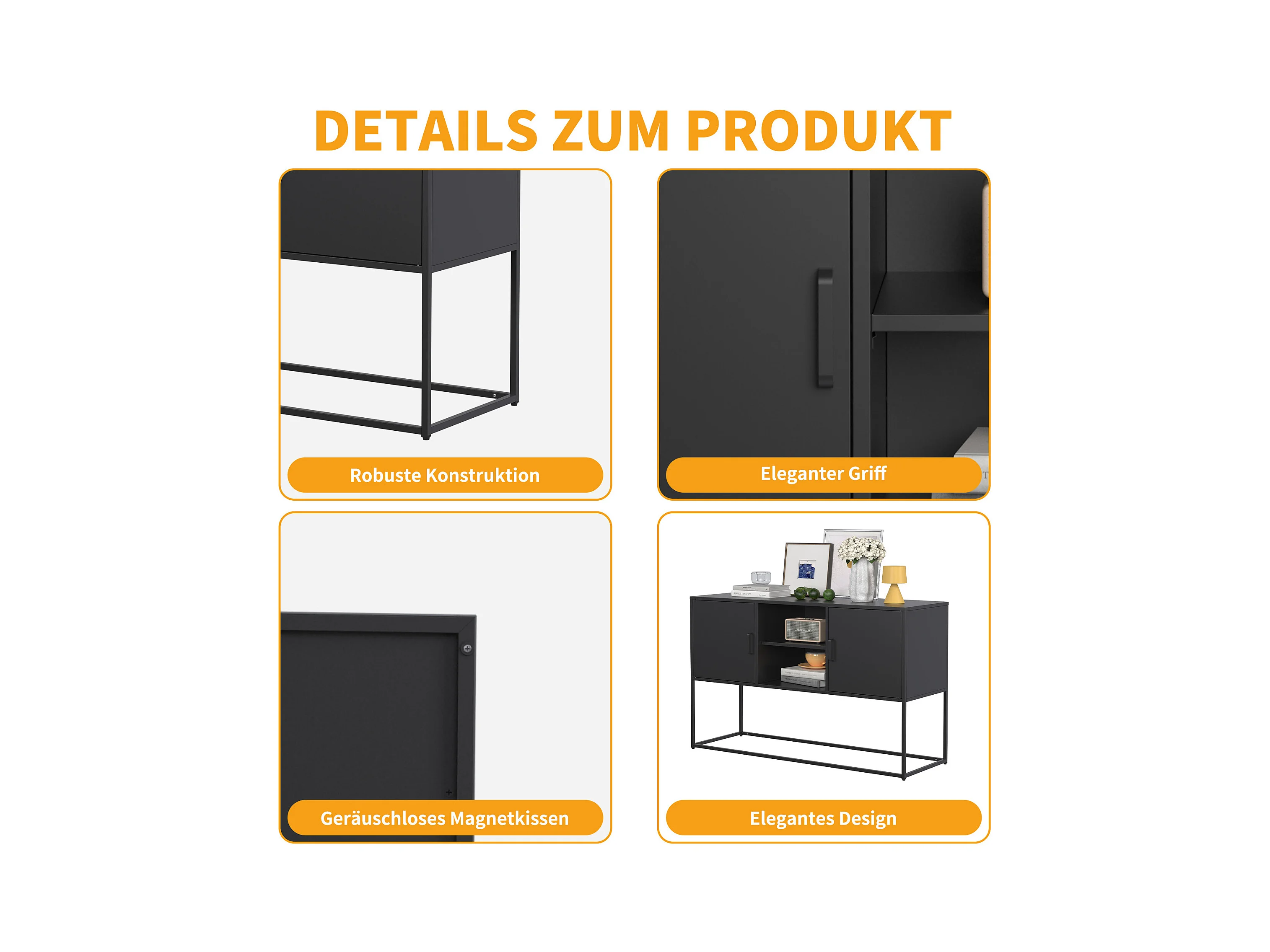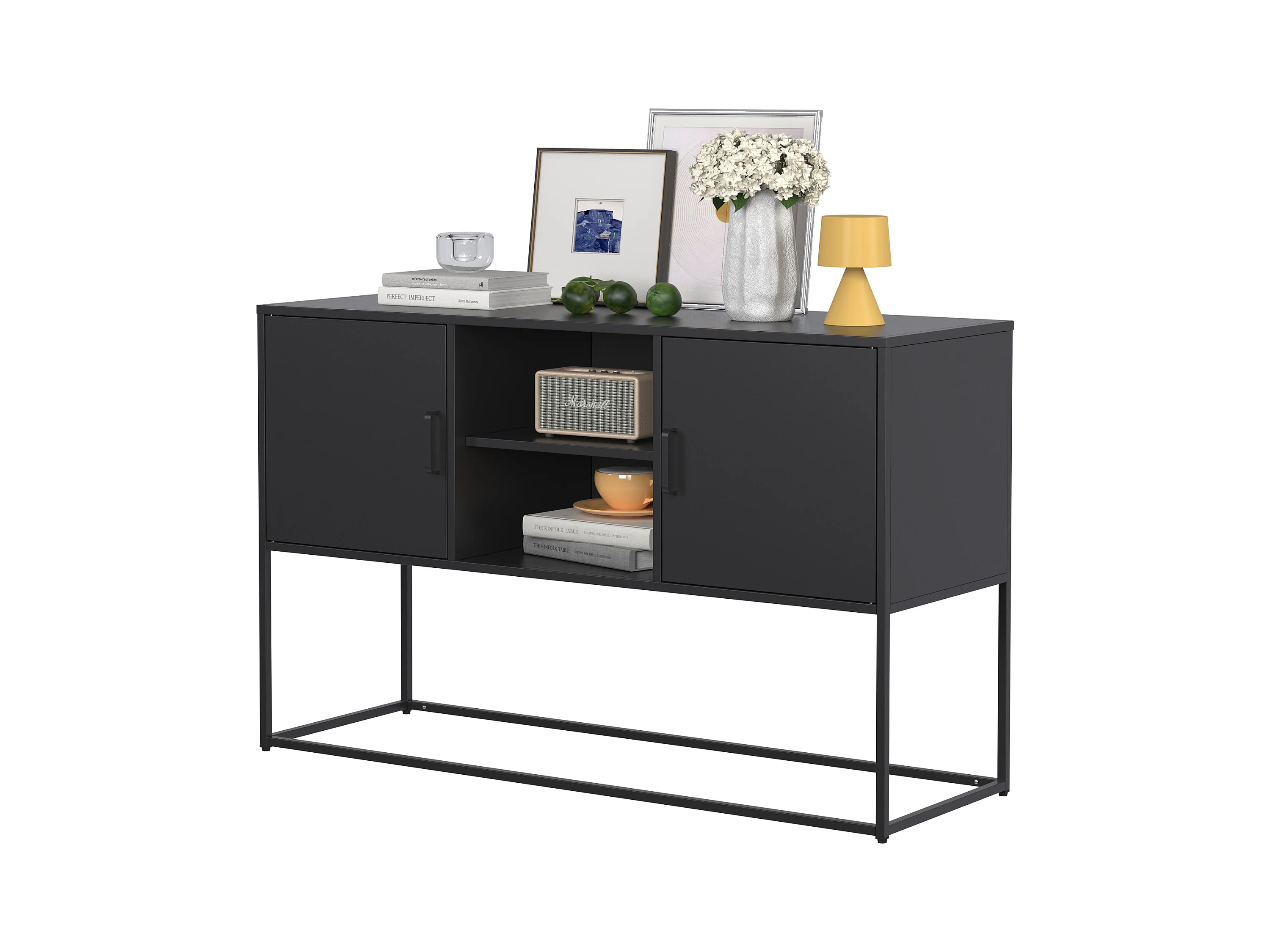Buffet da tavolo in acciaio, armadio metallico di alta capacità per salone o scrivania, nero 80x40x85 cm