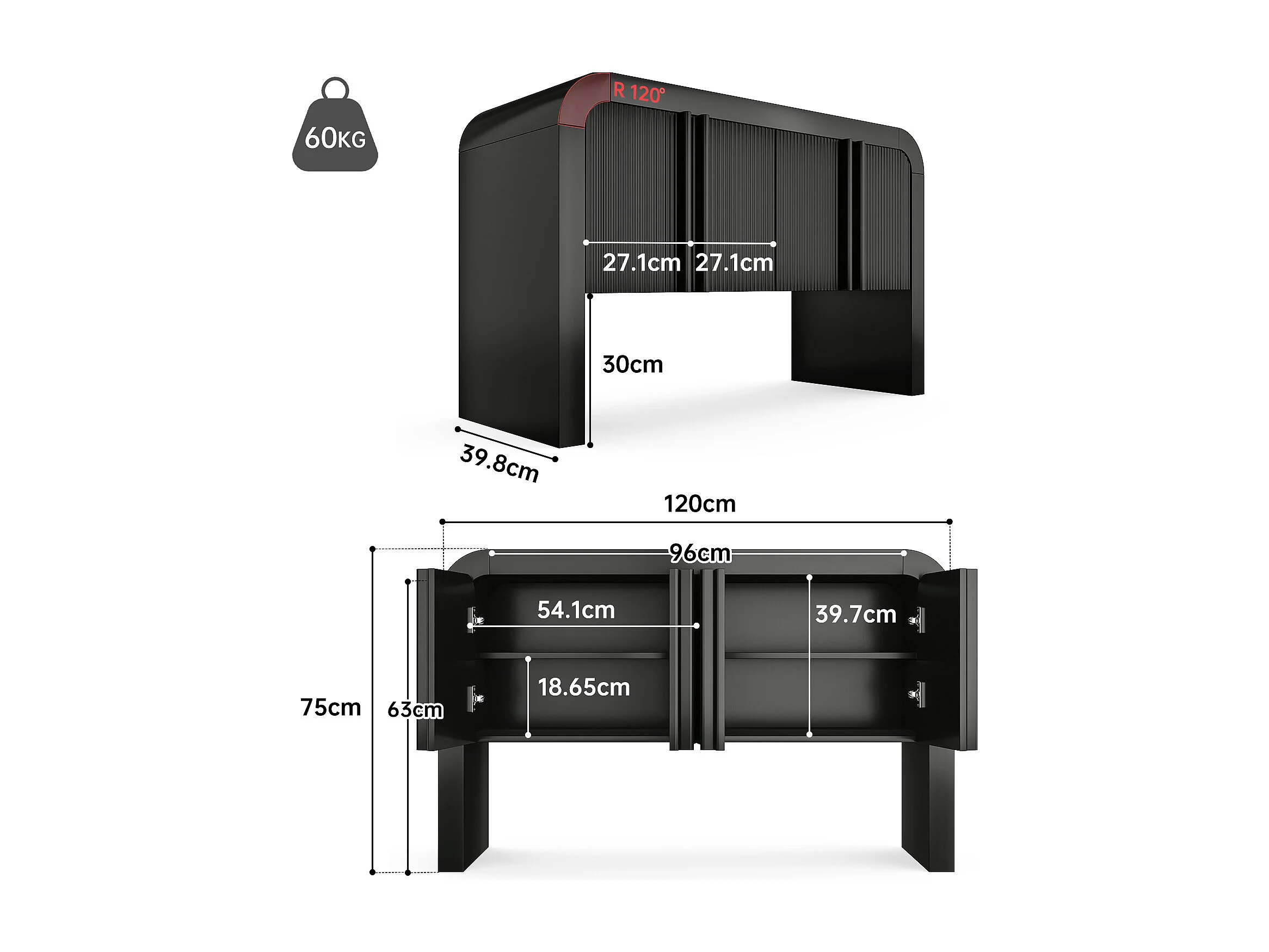Buffet moderno – 4 ante con design unico – in MDF – Nero