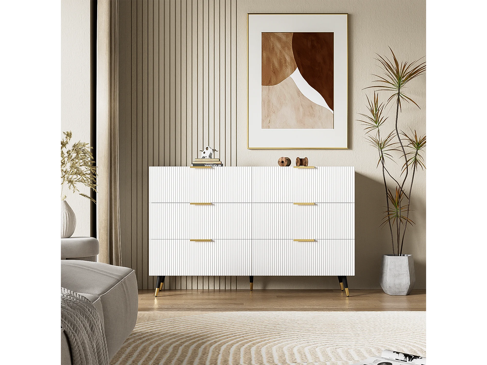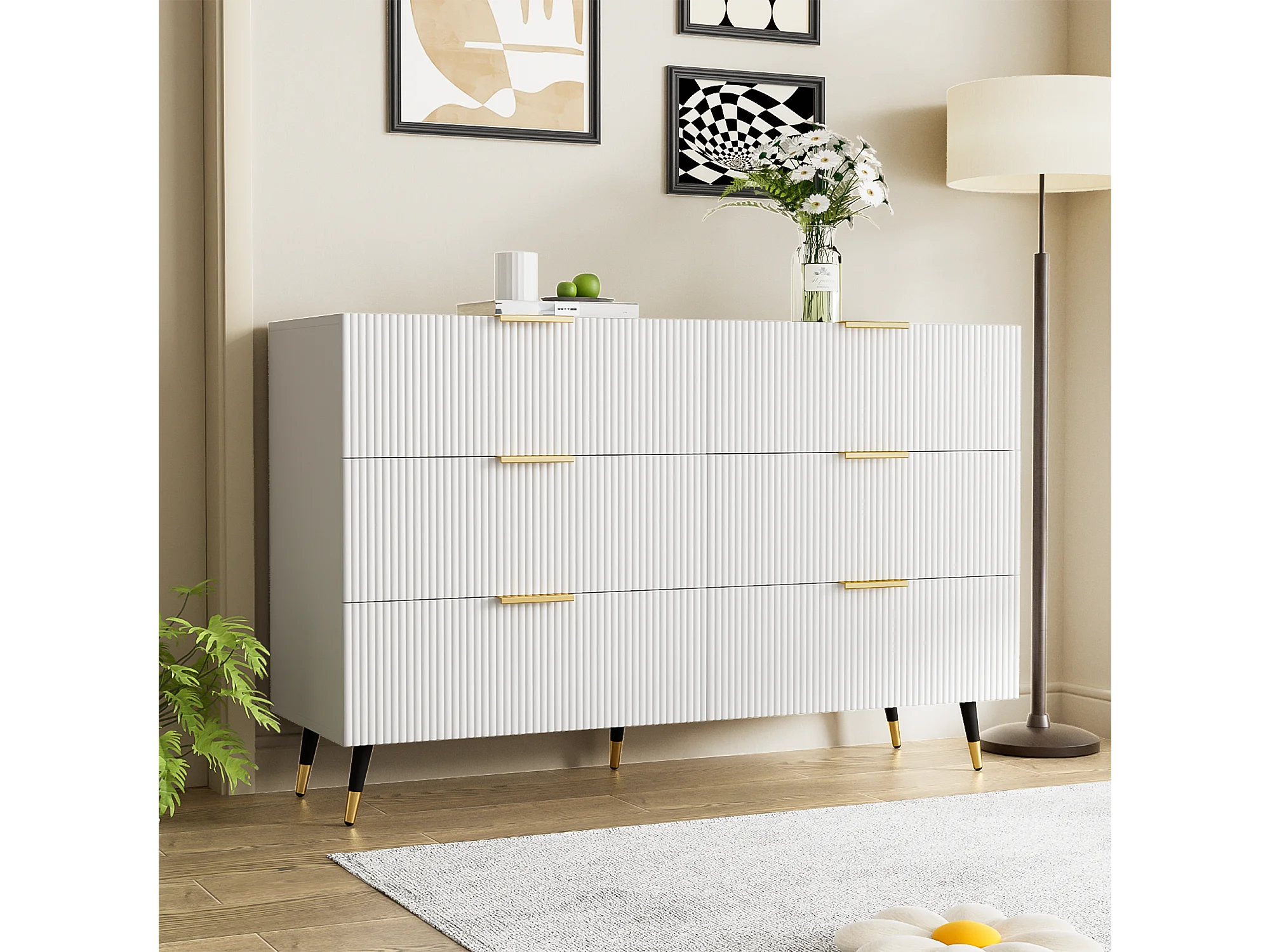 Buffet moderno bois blanc et or 6 cassetti 120x40x77 cm meuble de rangement design salon