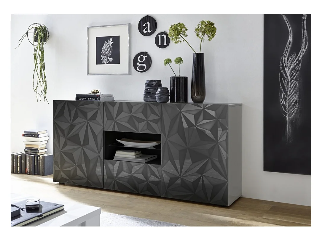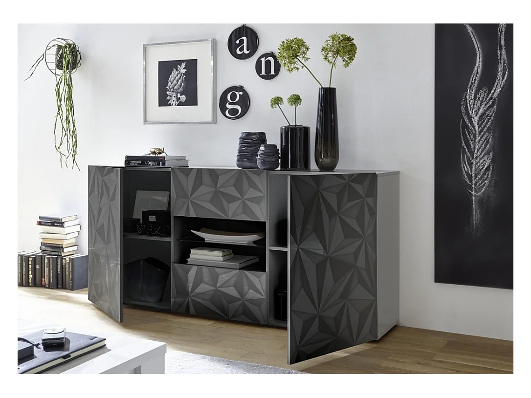 Madia 2 ante 3 cassetti nero in legno laminato 167x43 cm