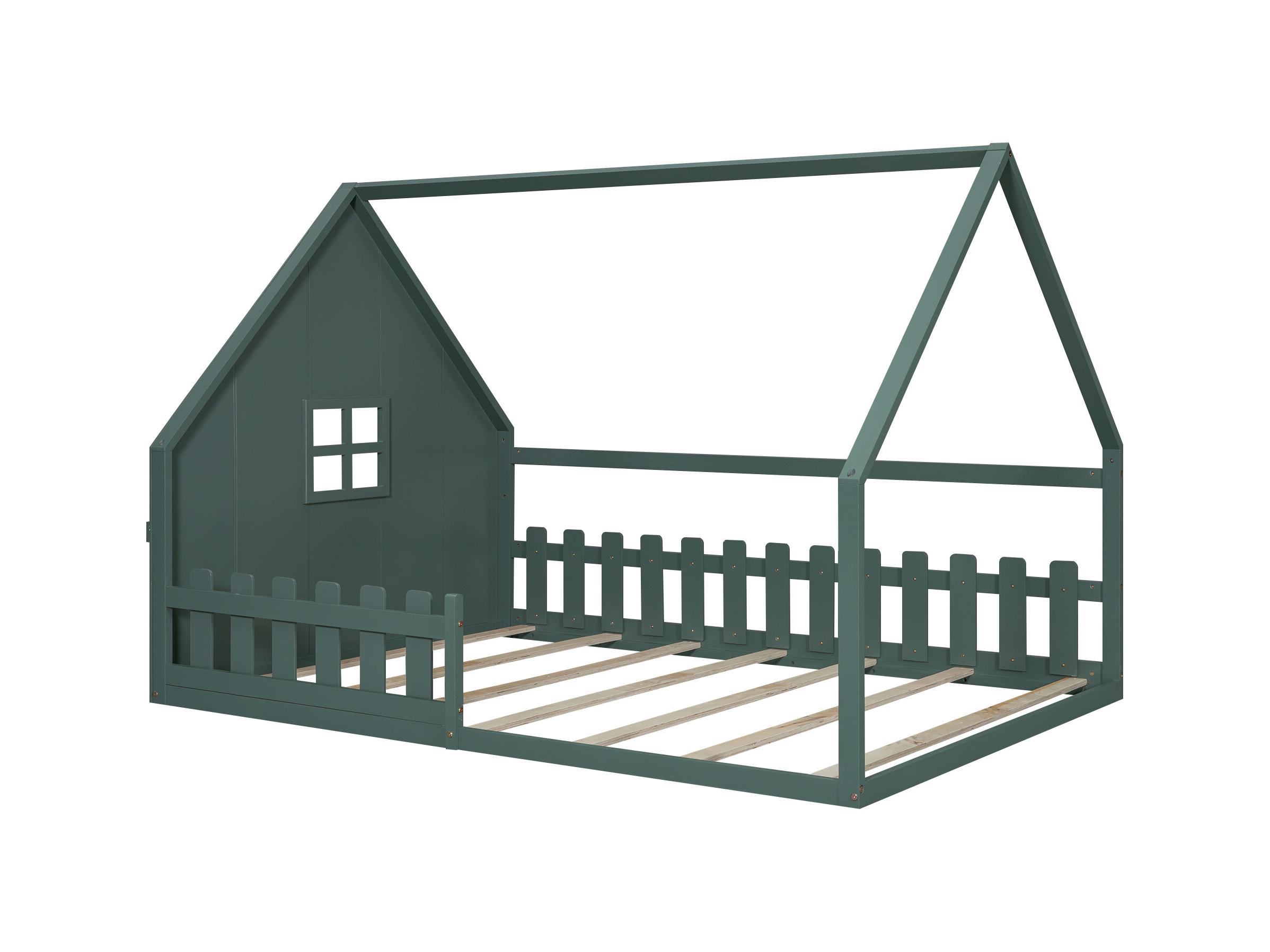 Cabane enfant illuminata 140x200 cm bois massif avec barrière vert