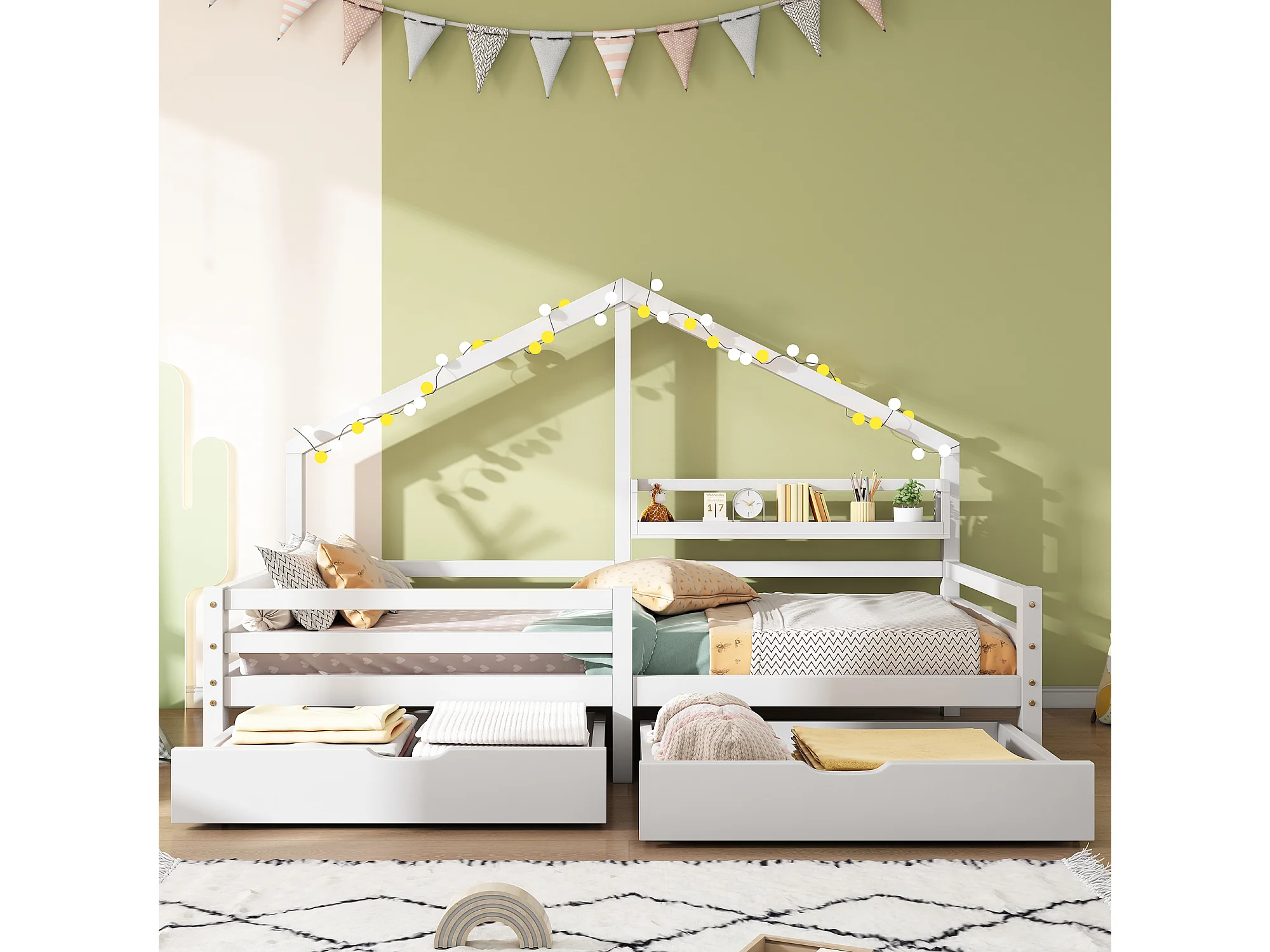 Cabane enfant illuminata 90x200 cm pin massif blanc con étagère et 2 tiroirs de rangement
