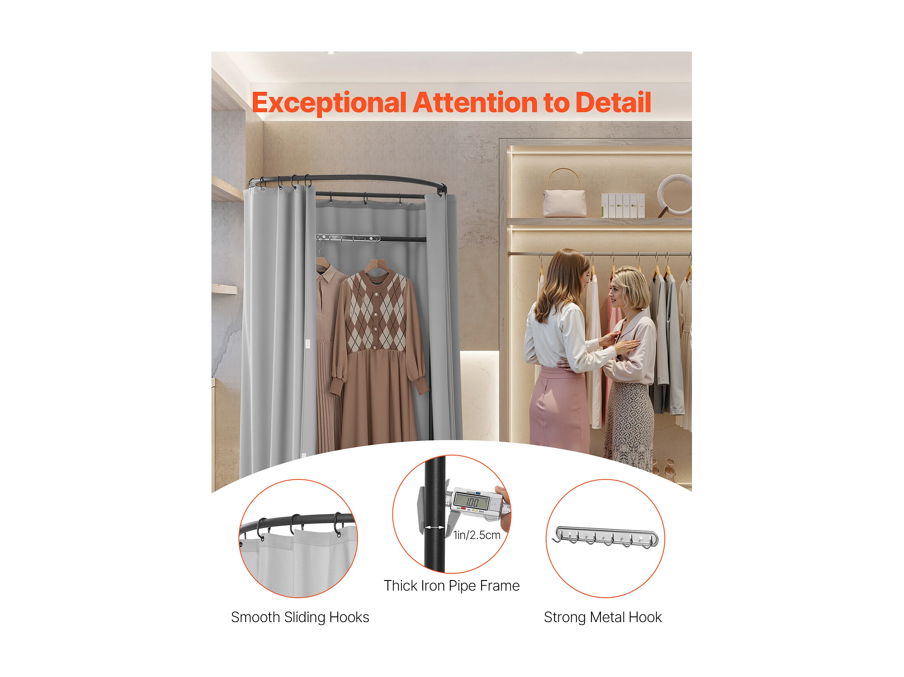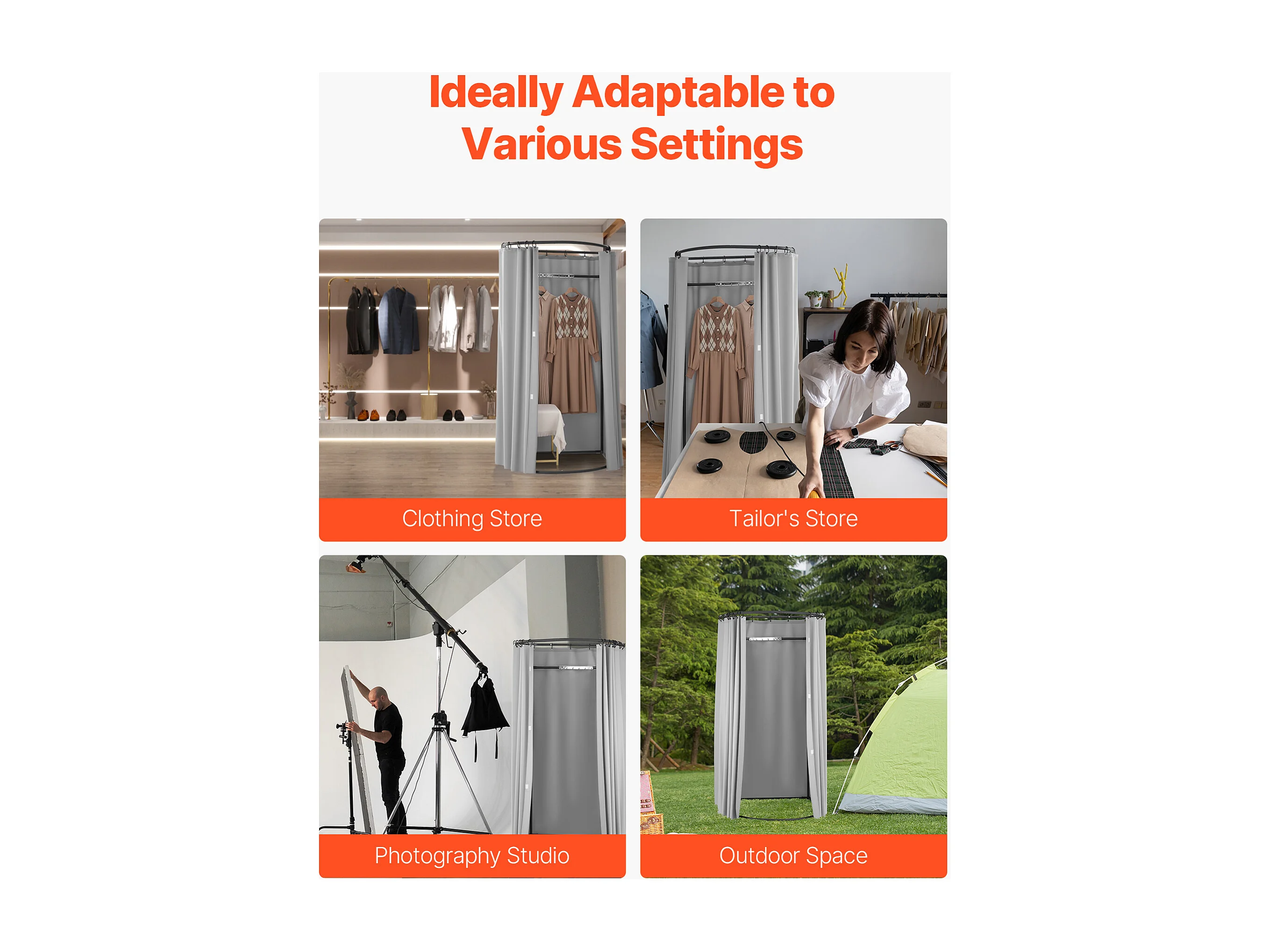 Cabina di Prova SucceBuy, 99x99x198 cm, Spogliatoio Portatile con Tende Spesse in Poliestere e Ganci, Spazio Privato per Negozi, Boutique