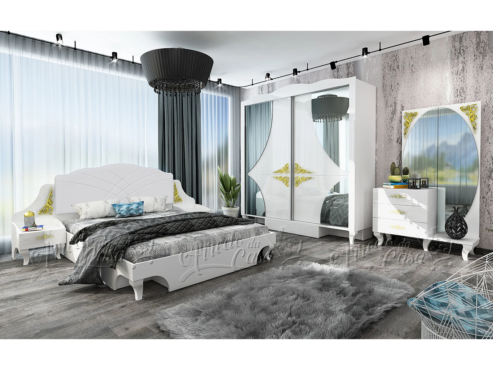 Camera da letto matrimoniale 160x200 completa design effetto laccato bianco lucido CMG42