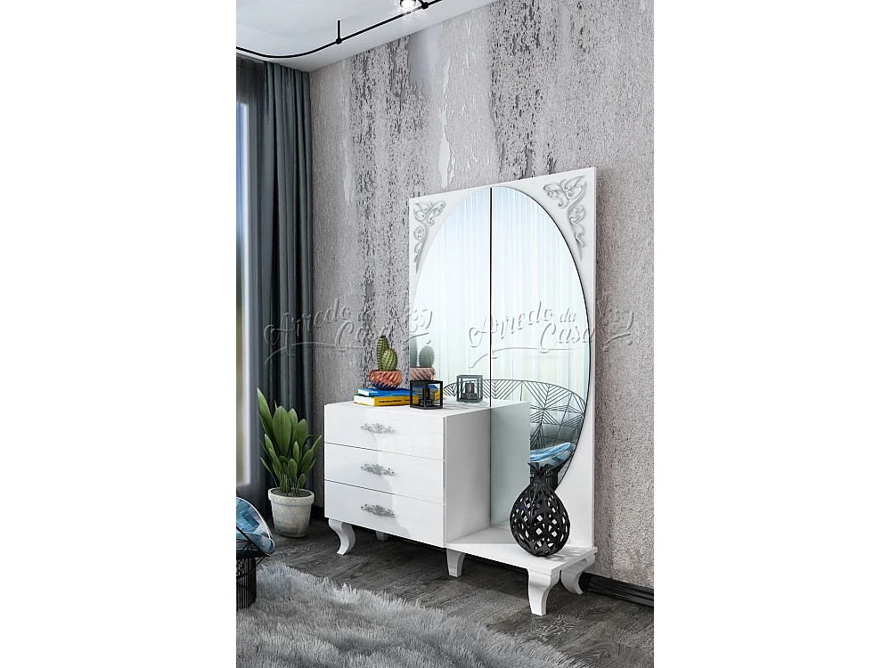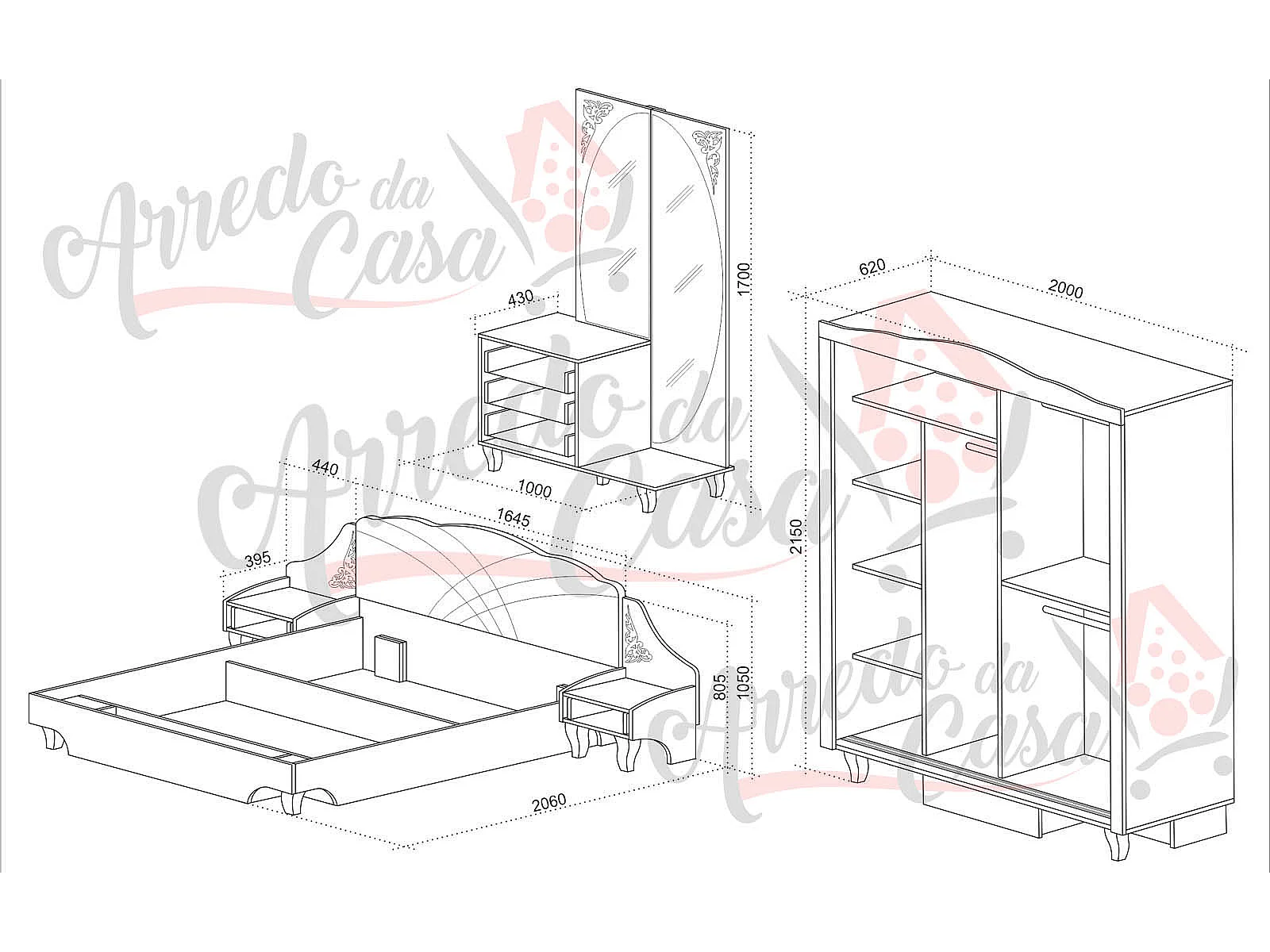 Camera da letto completa 160x200 con comò e specchio effetto legno bianco CMG44