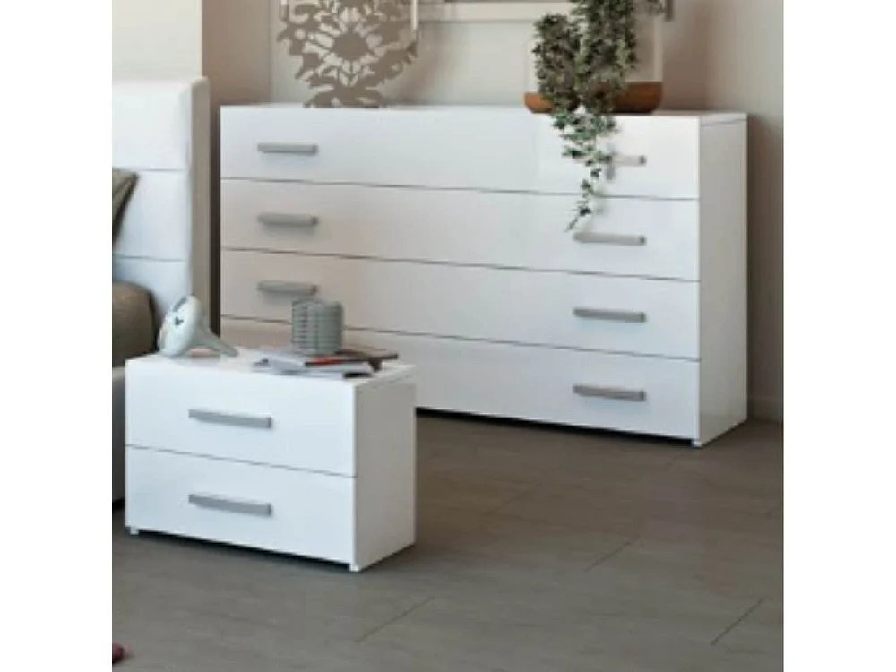 Cassettiera effetto legno con gambe in legno 4 cassetti, bianco