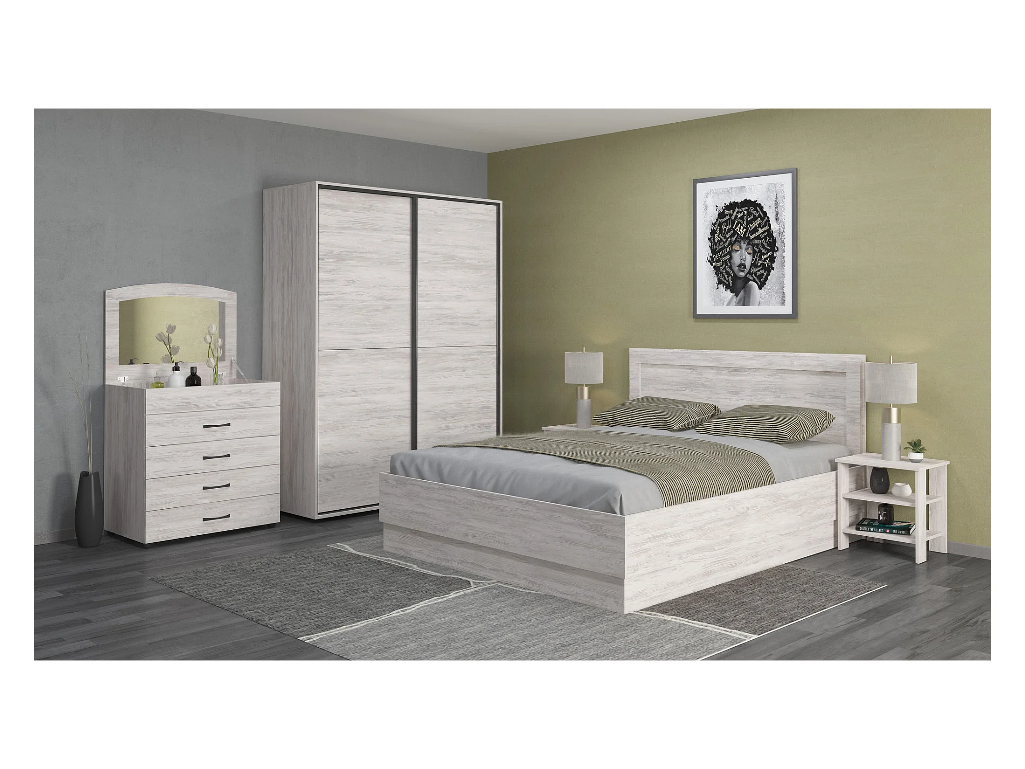 Camera da letto completa 160x200 con comò e specchio effetto legno bianco CMG44