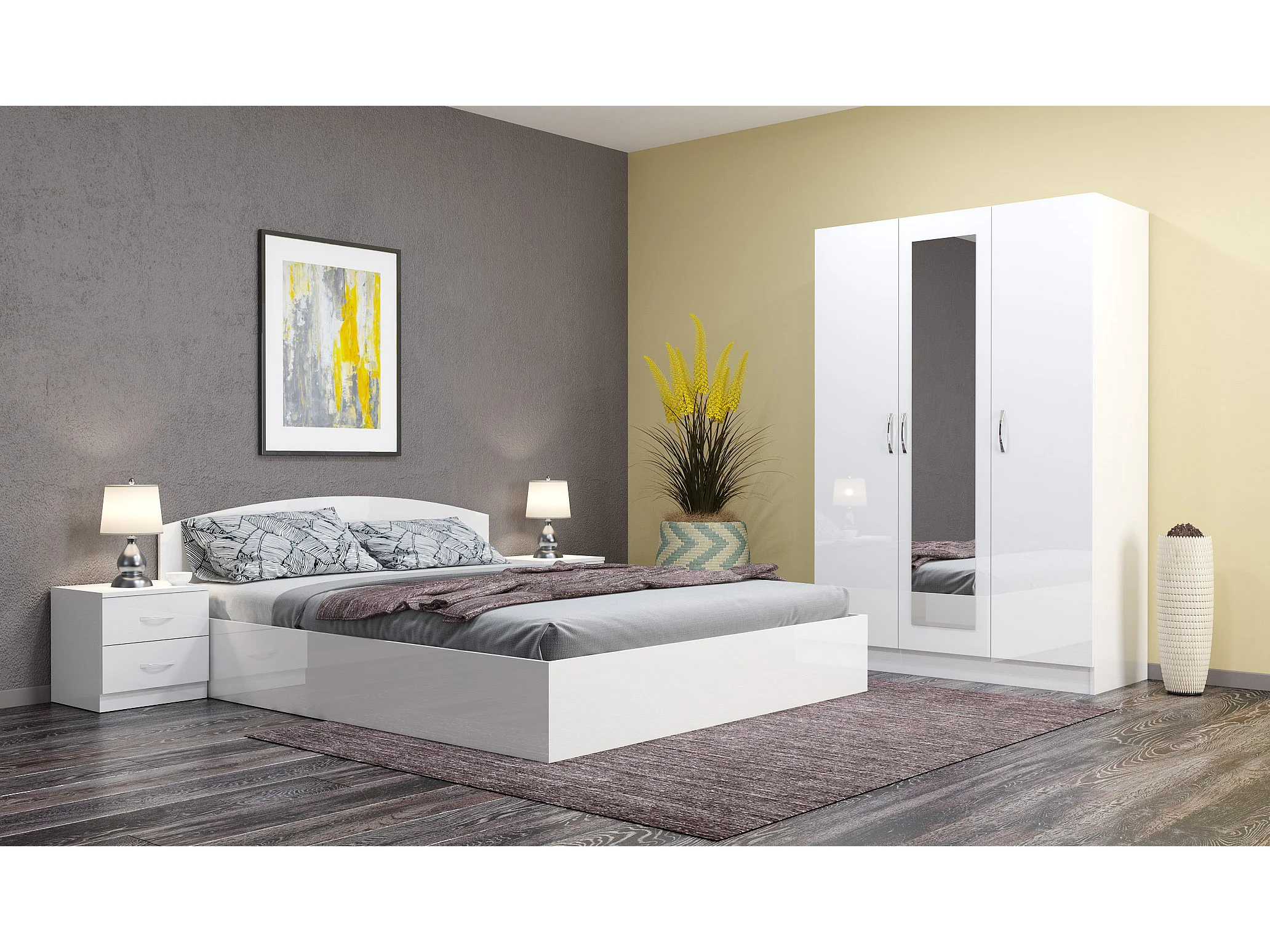 Camera da letto matrimoniale 160x200 completa design effetto laccato bianco lucido CMG42
