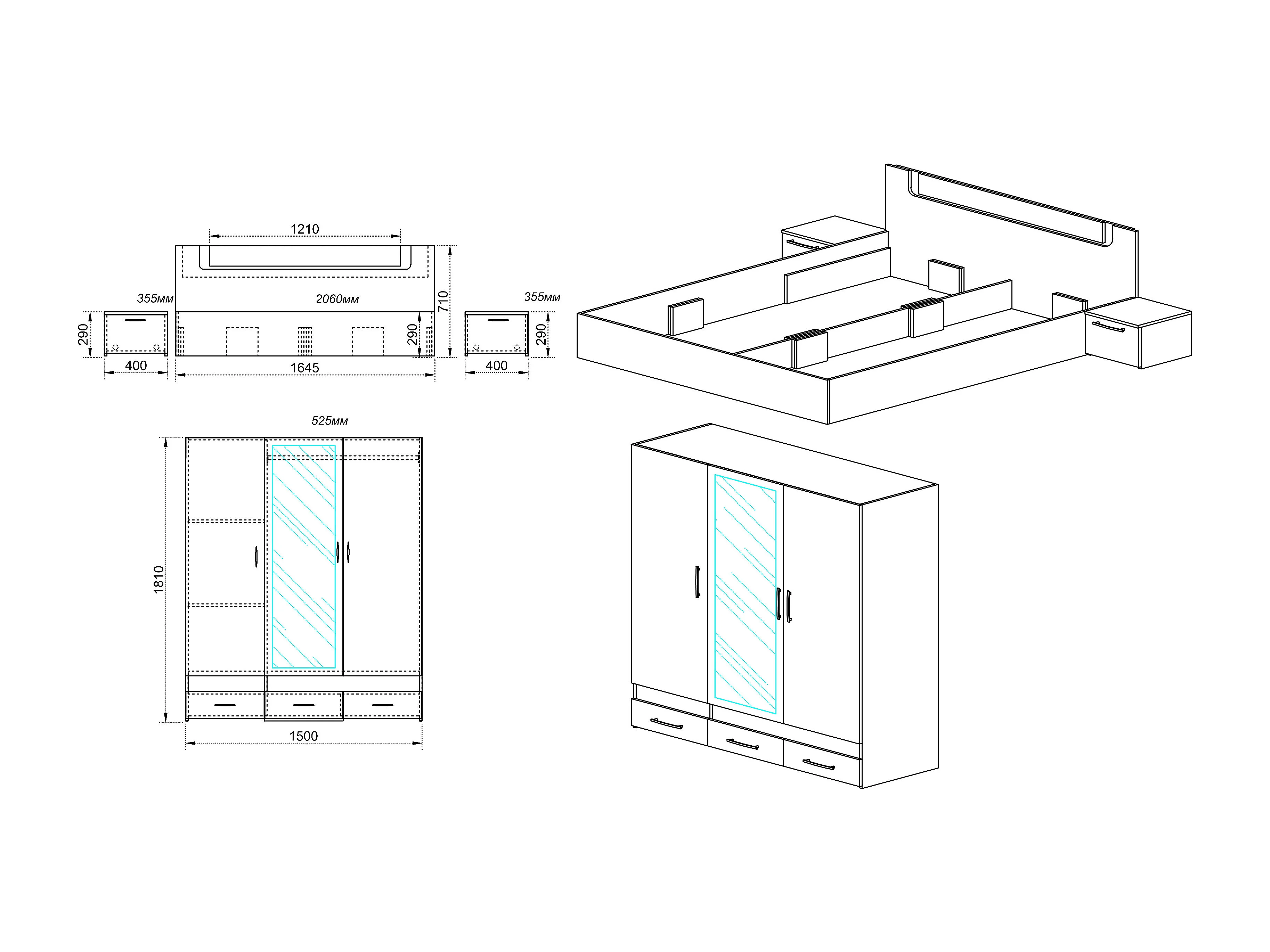 Camera da letto completa moderna 160x200 grafite beige noce CDLU36