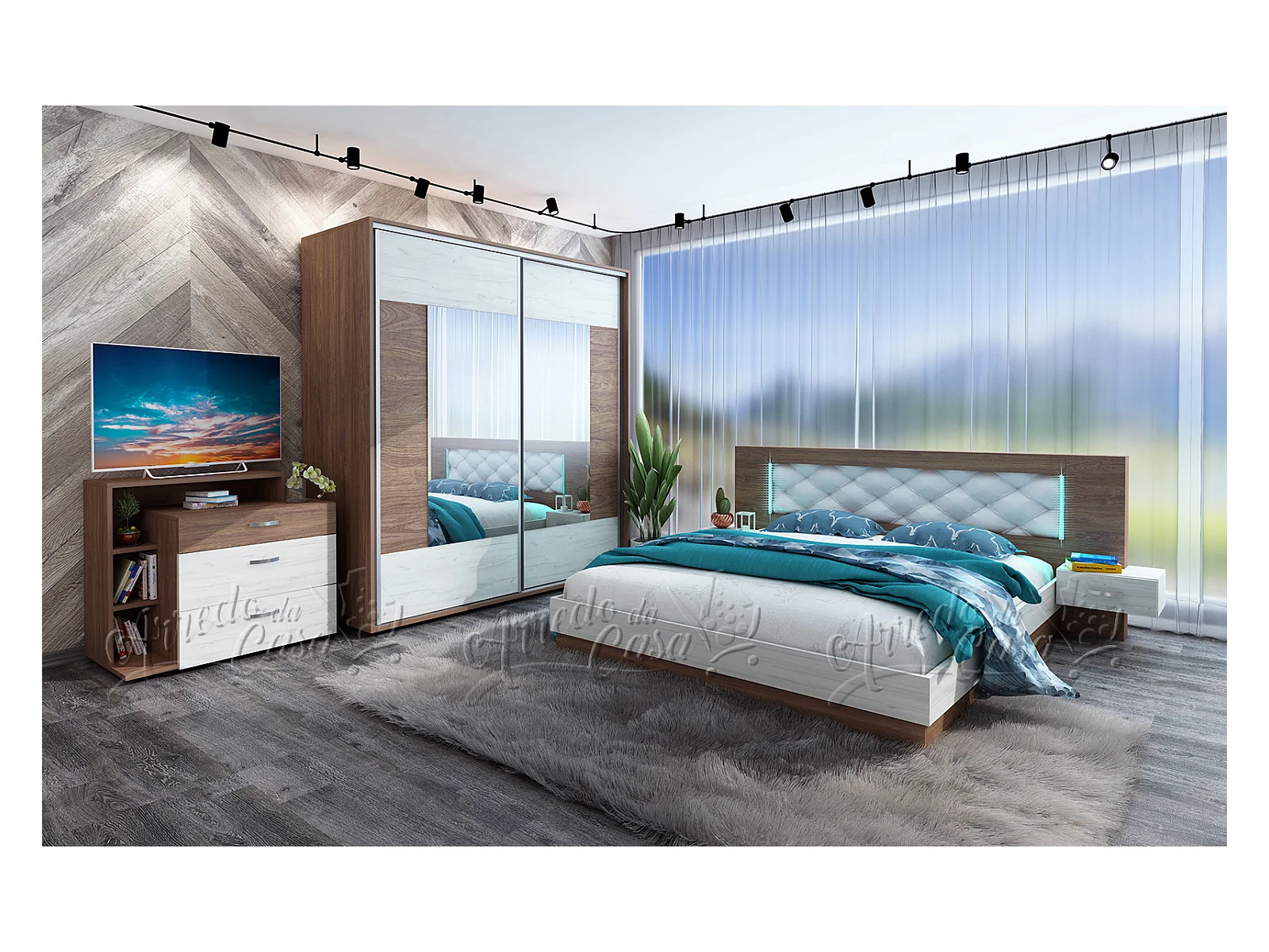 Camera da letto completa moderna wengè e bianco motivo floreale CMG48