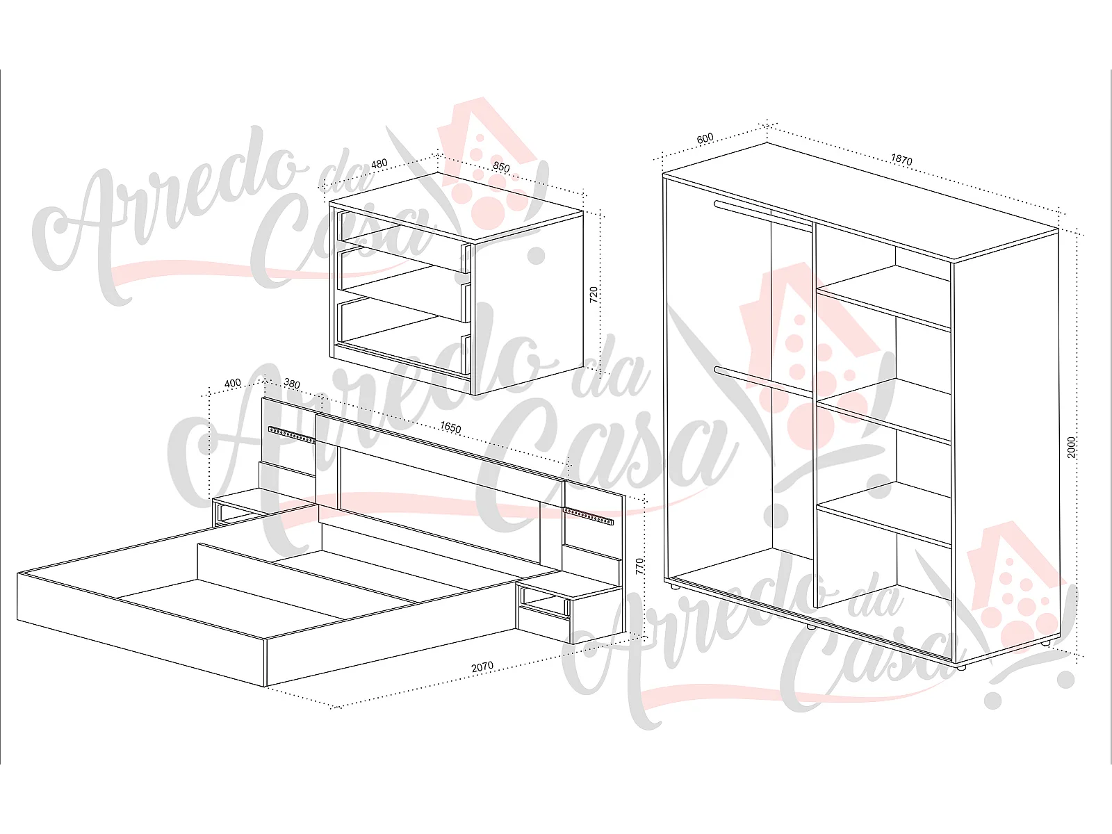 Camera da letto matrimoniale 160x200 completa design laccato bianco lucido e antracite CMG43