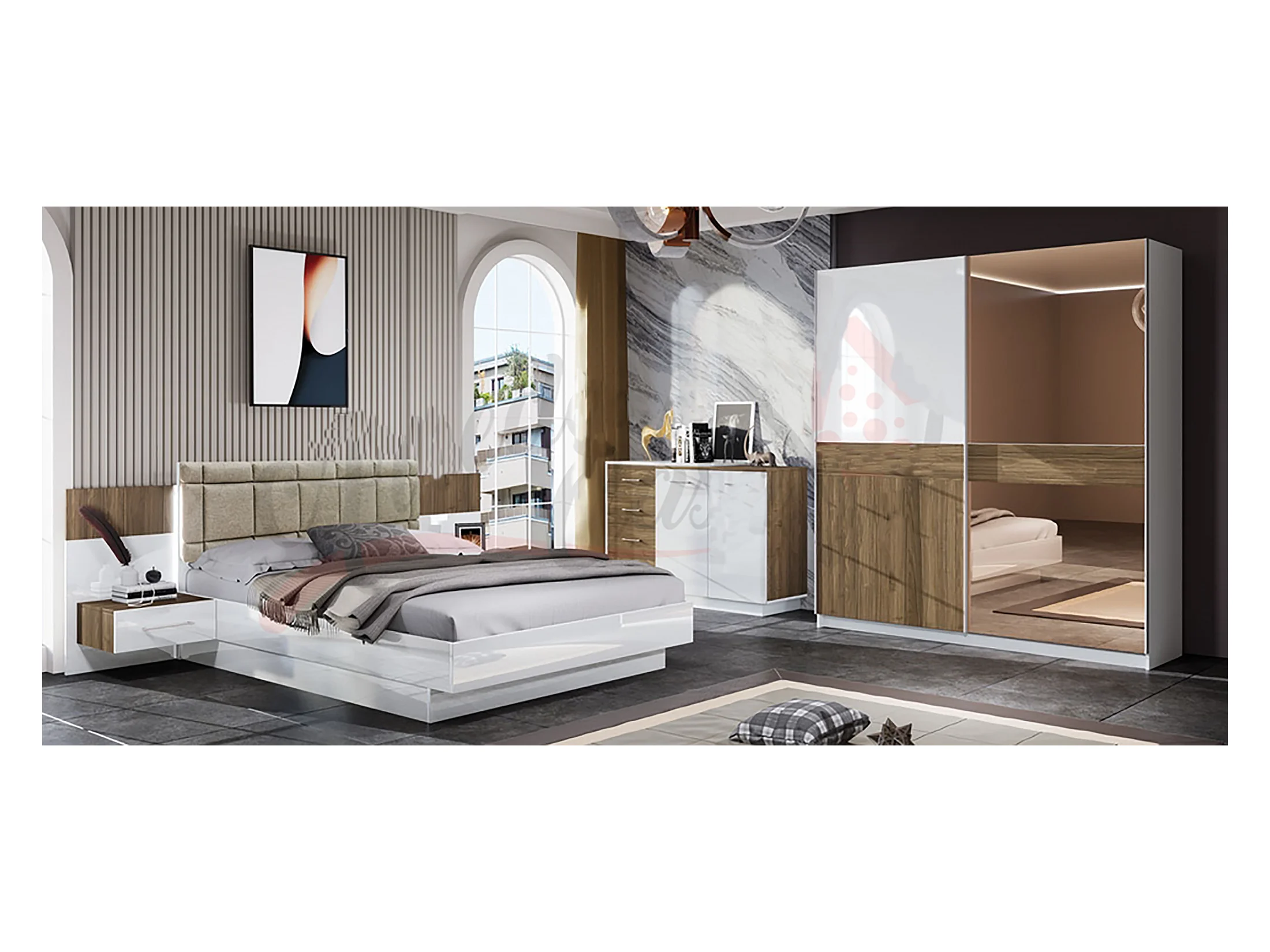 Camera da letto completa moderna wengè e bianco motivo floreale CMG48
