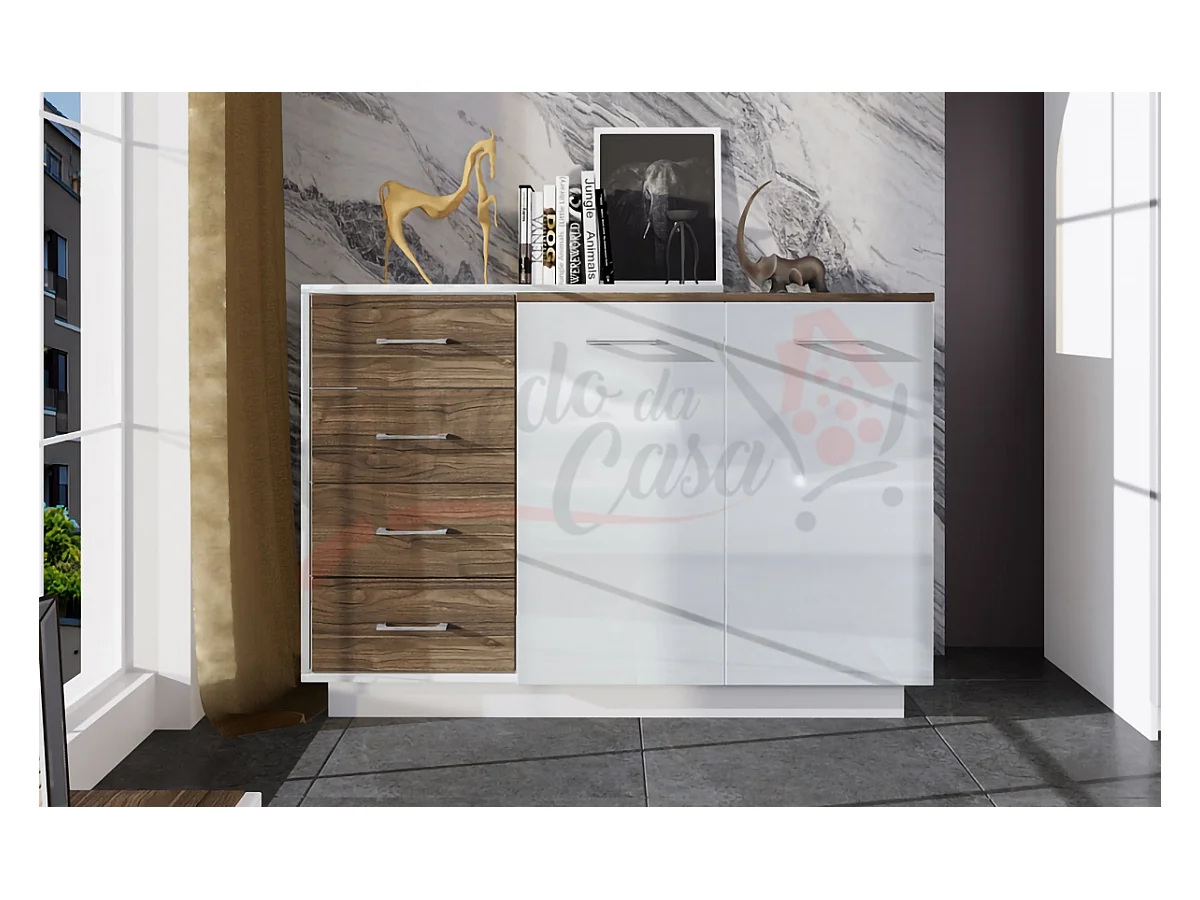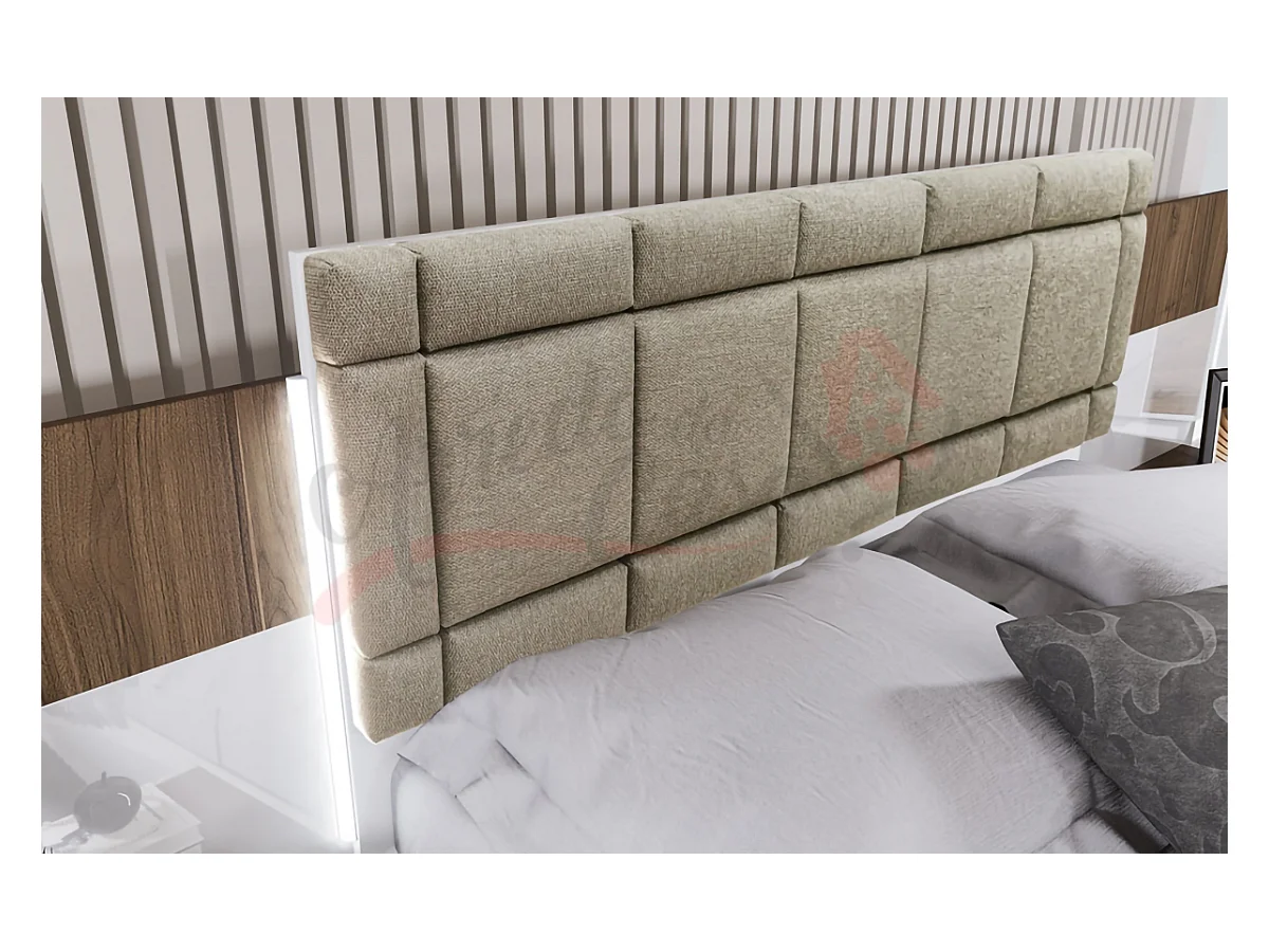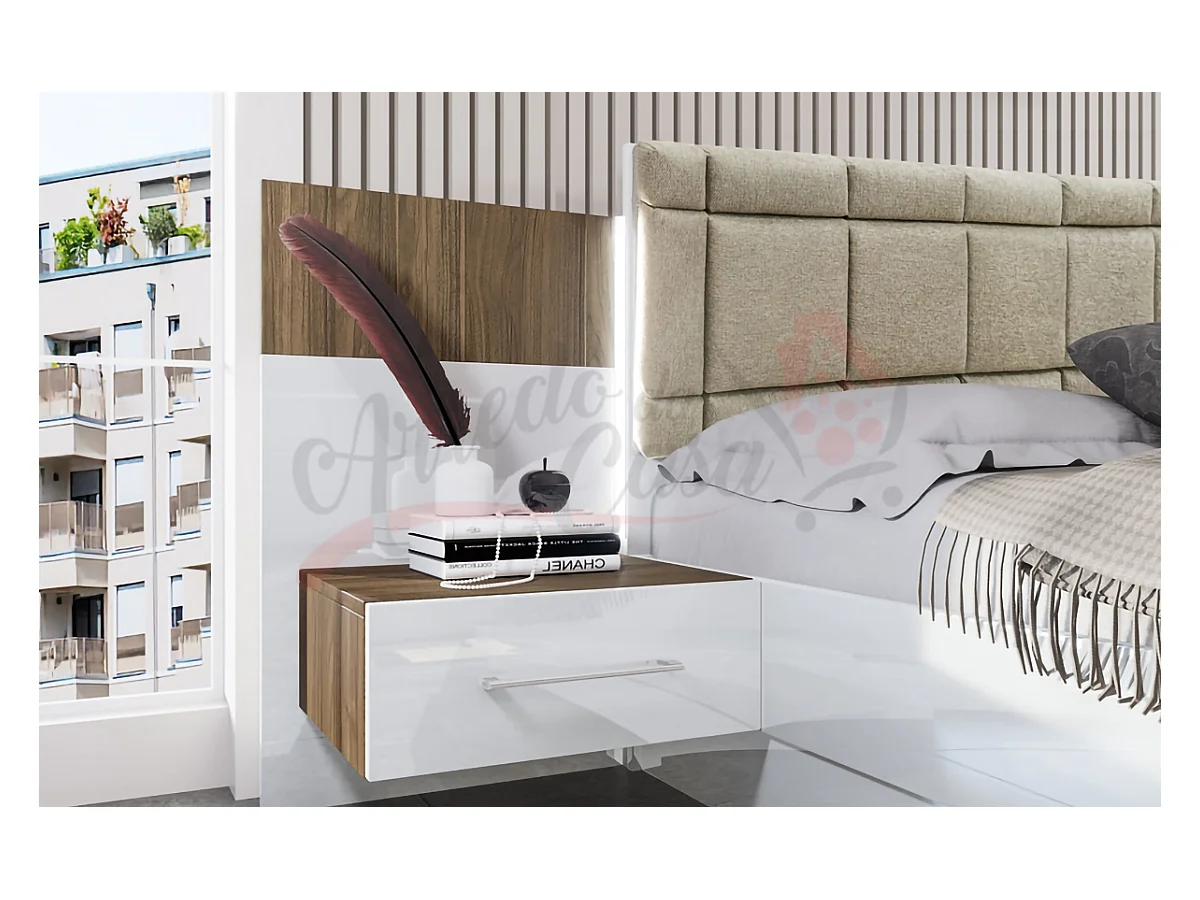 Camera da letto completa con letto contenitore 160x200 cm wengè e lino bianco CMG3