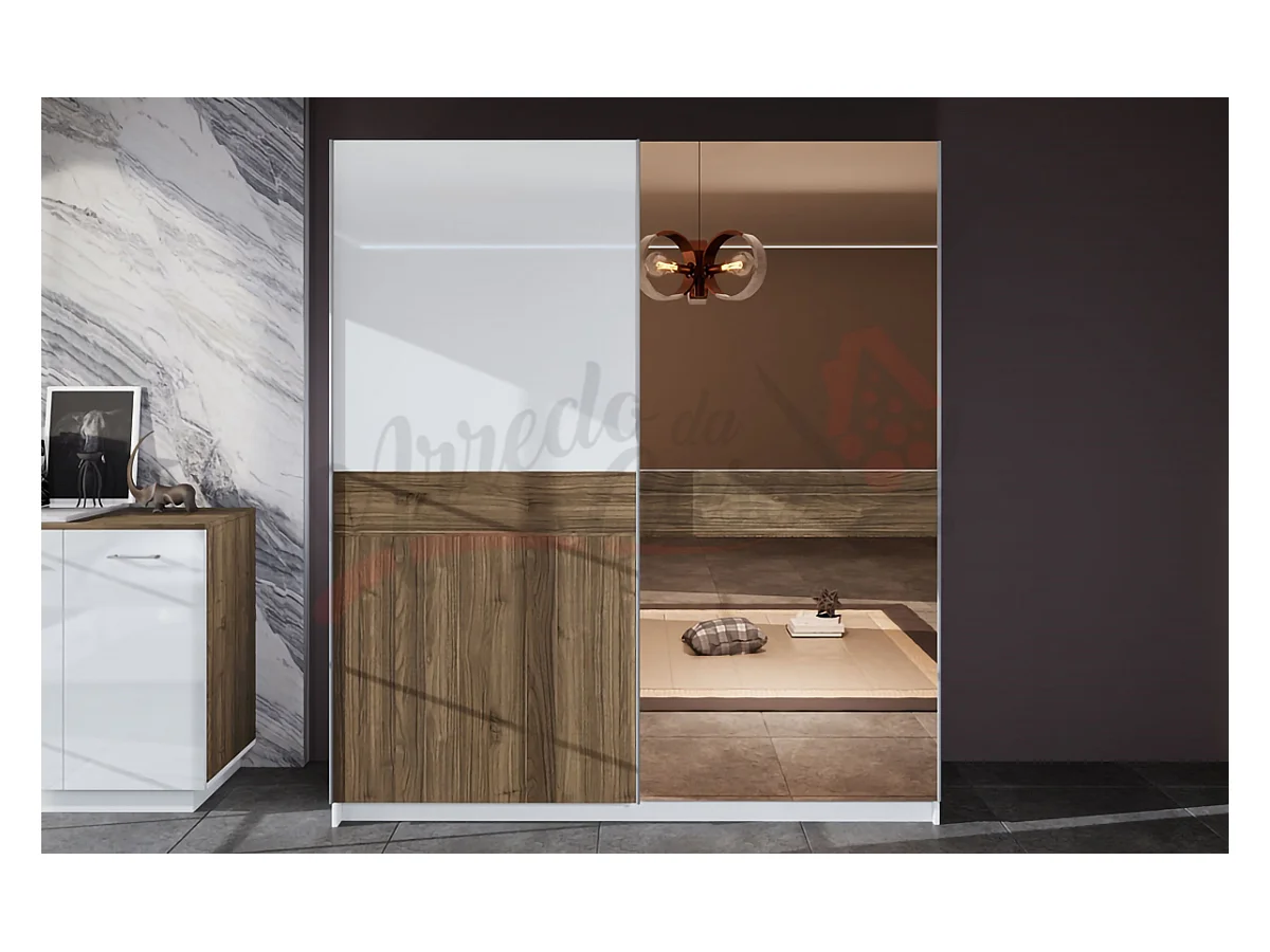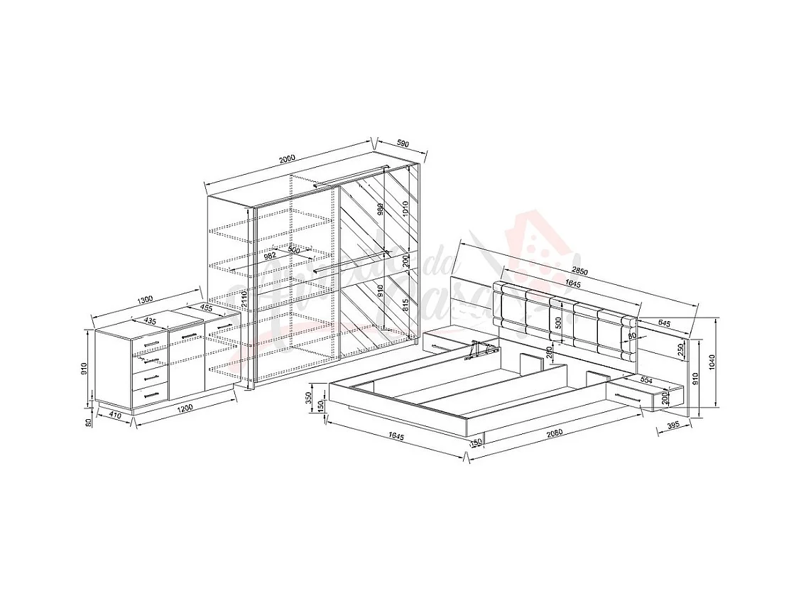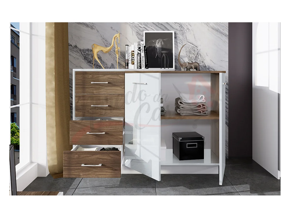 Camera da letto completa con letto contenitore 160x200 cm wengè e lino bianco CMG3