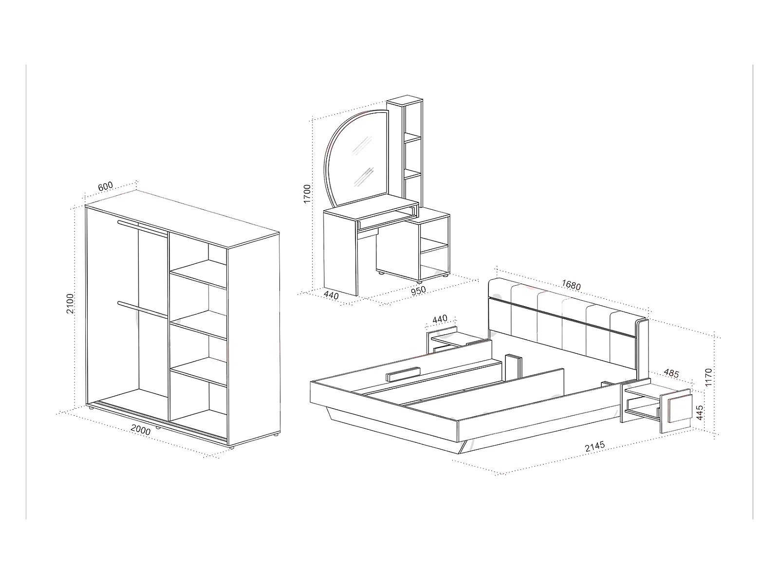 Camera da letto completa con letto matrimoniale contenitore 160x200 cm grigio grafite CMG8