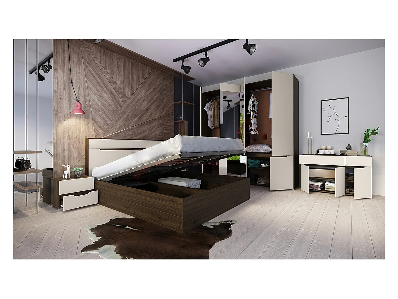 Camera matrimoniale con letto contenitore 160x200 cm noce e antracite CMG38