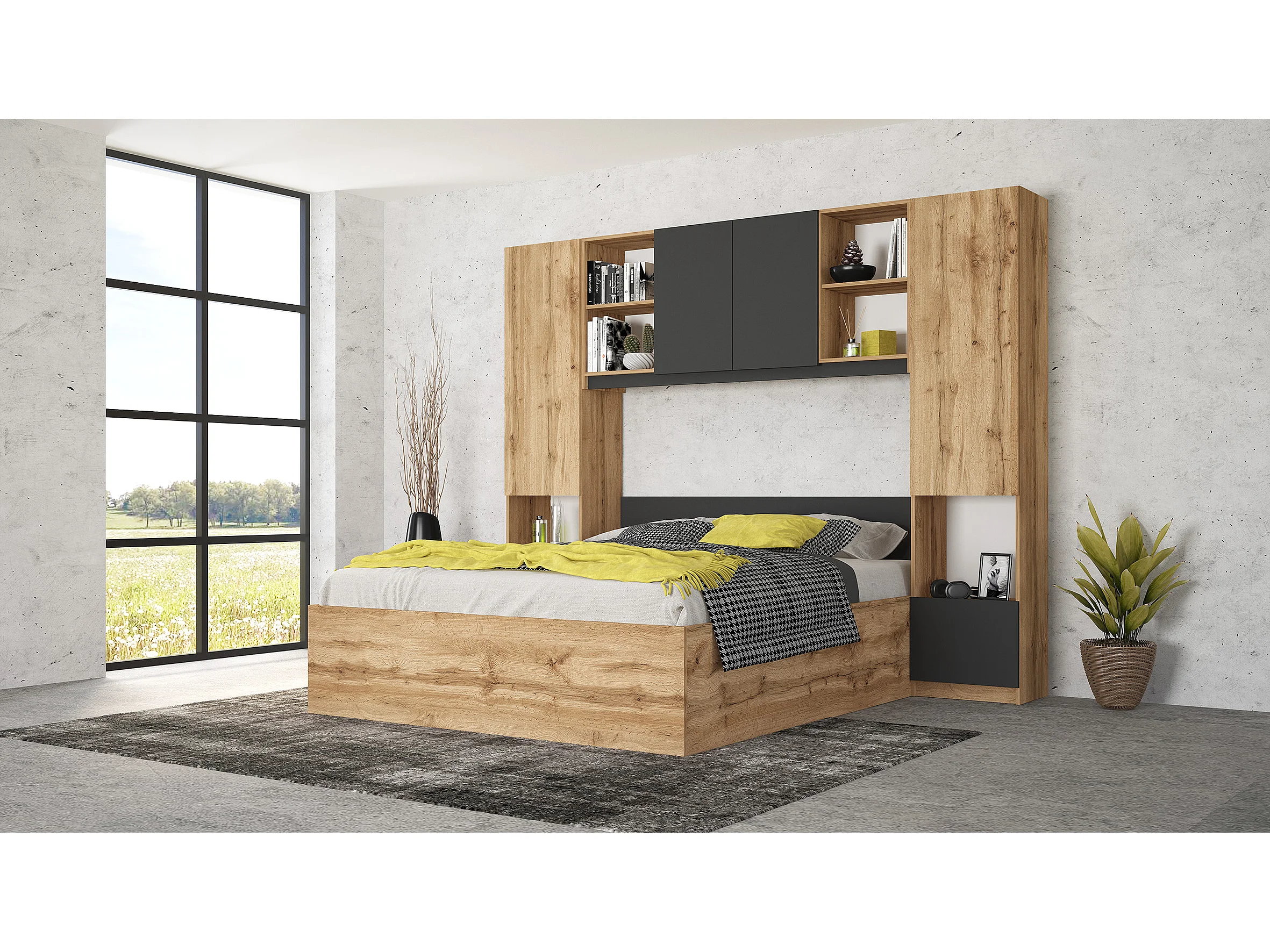 Camera da letto con armadio a ponte 254x200 cm rovere e antracite CMG49
