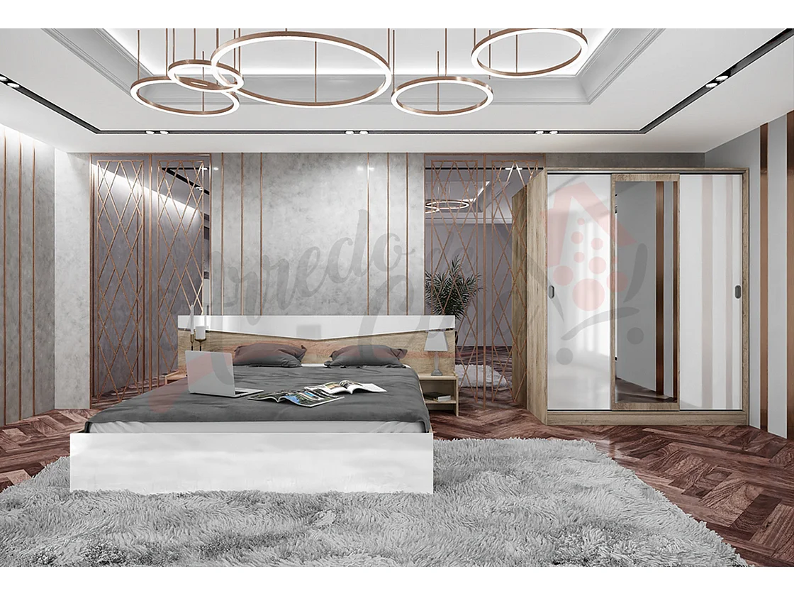 Camera da letto completa moderna bianco legno CMG47