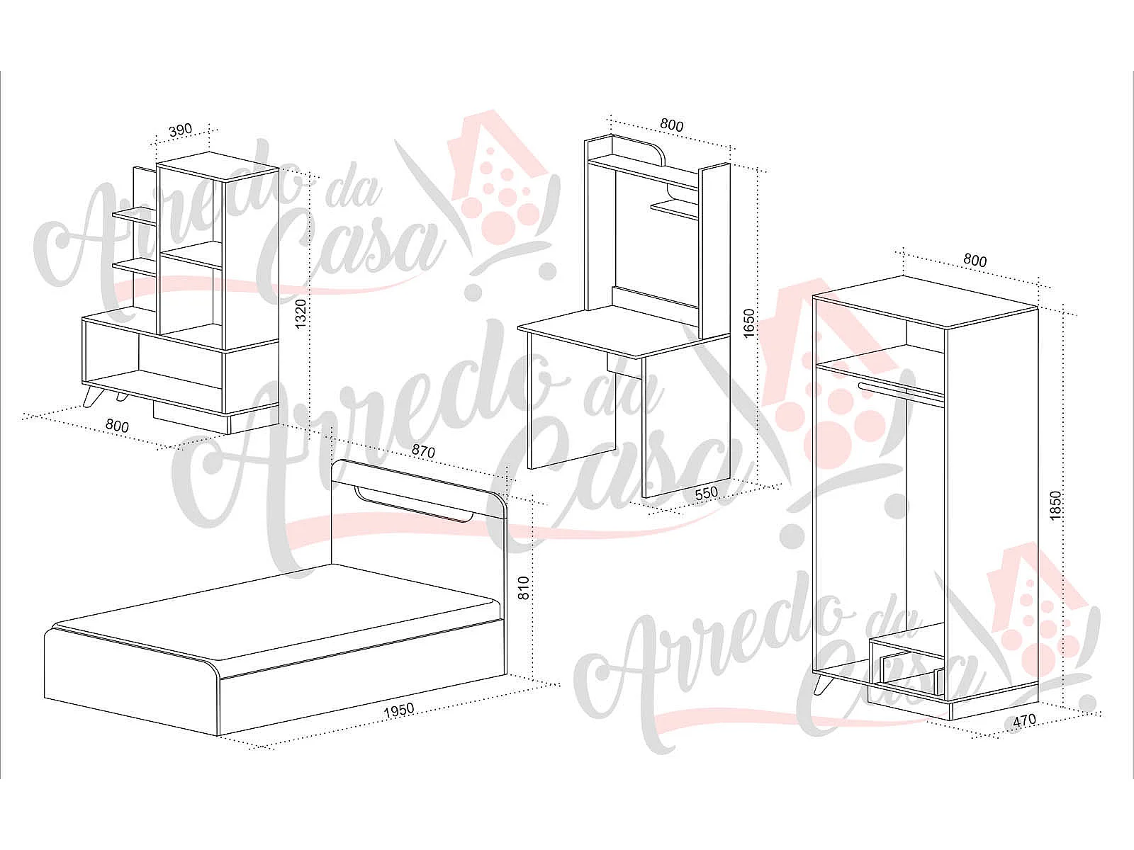 Cameretta completa moderna con letto contenitore 90x200 cm in rovere, antracite e bianco CBG12
