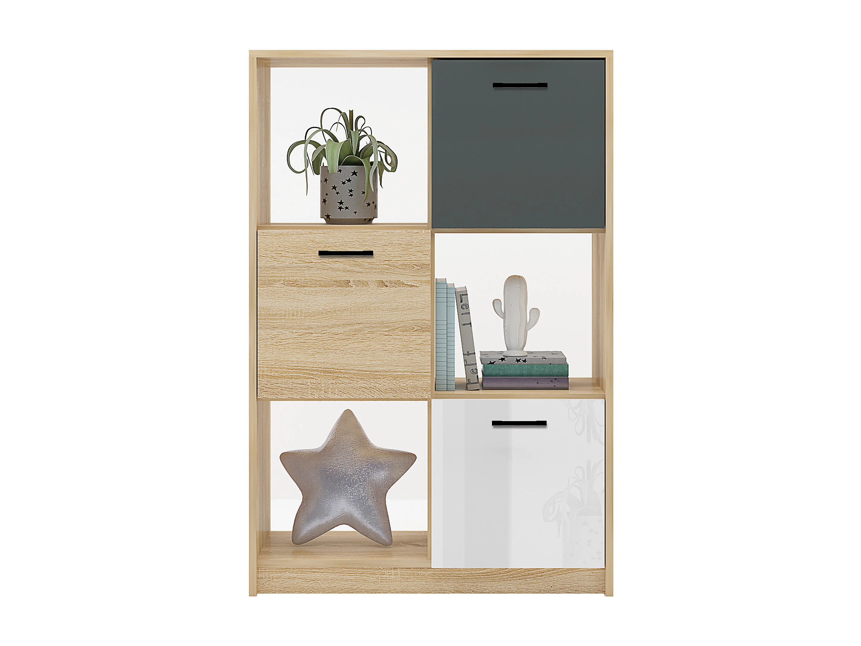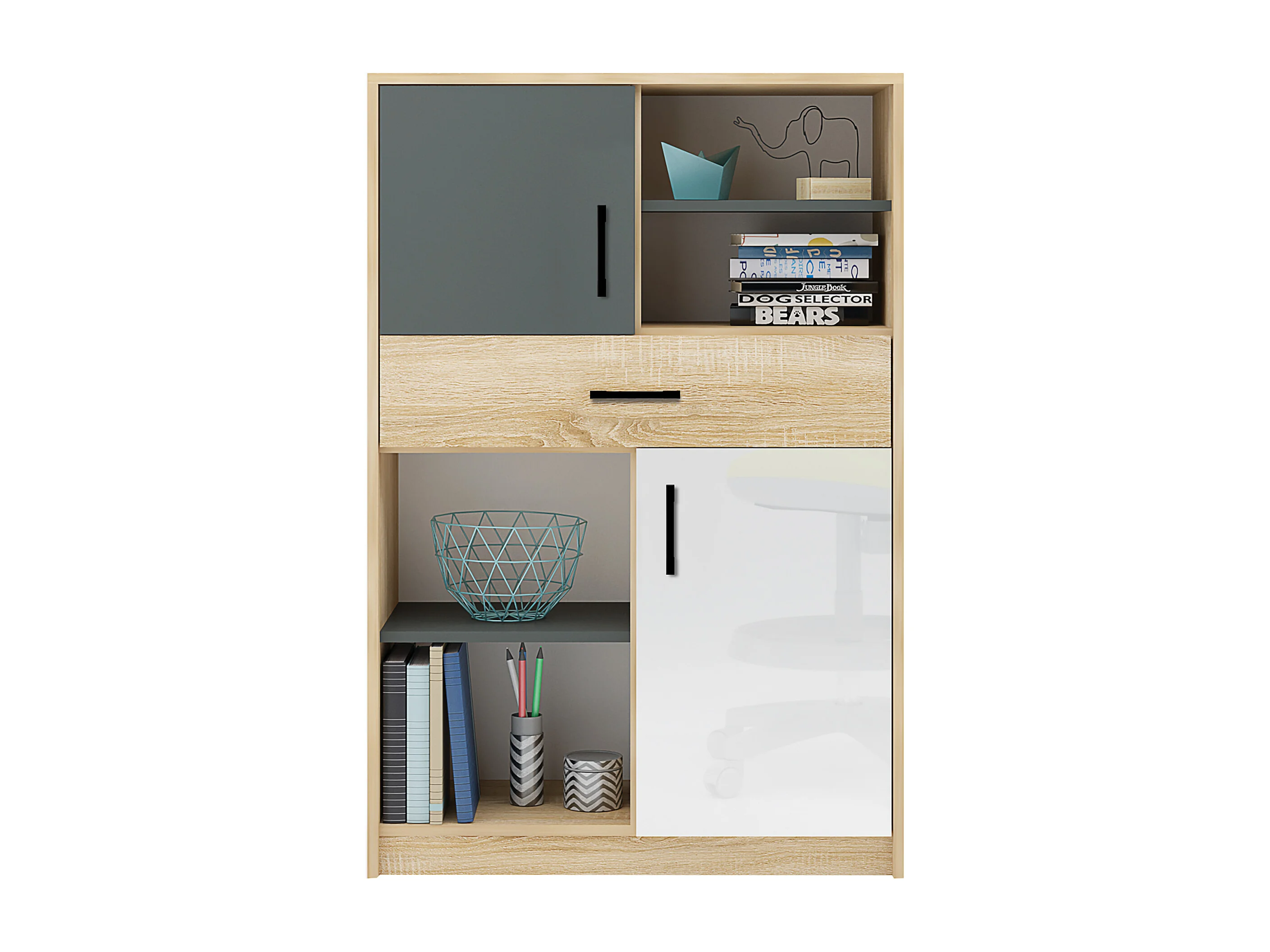 Cameretta completa 90x200 cm in rovere chiaro, bianco lucido e grigio antracite CBG16