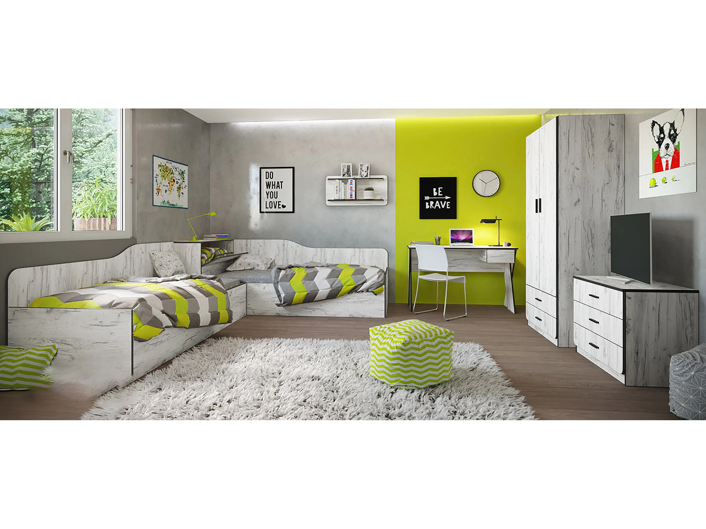 Cameretta moderna bianca e rovere per ragazzi CBP2