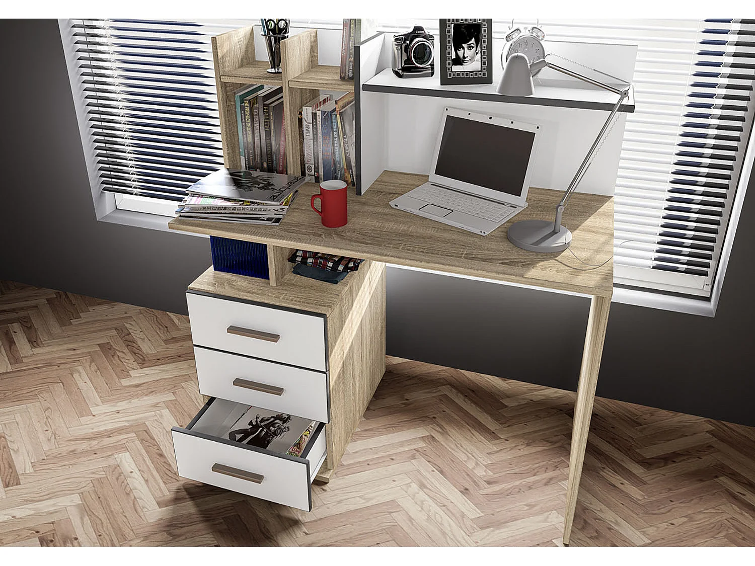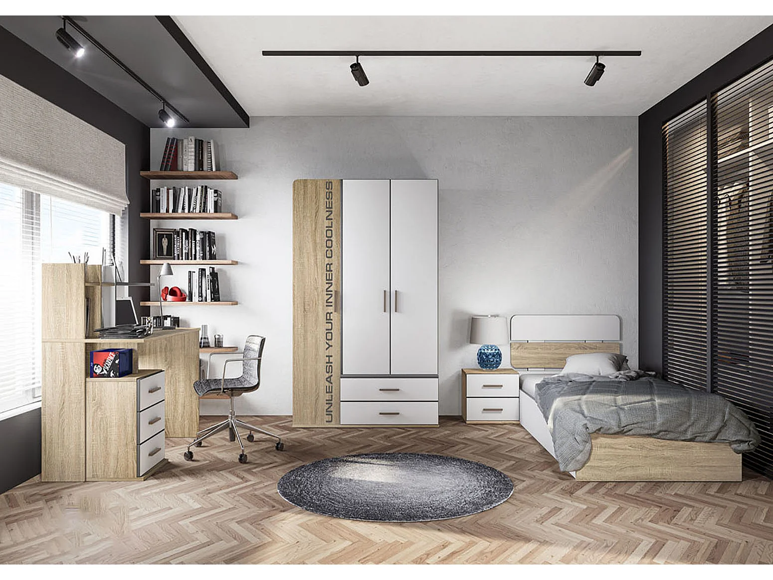 Cameretta moderna bianca e rovere per ragazzi CBP2